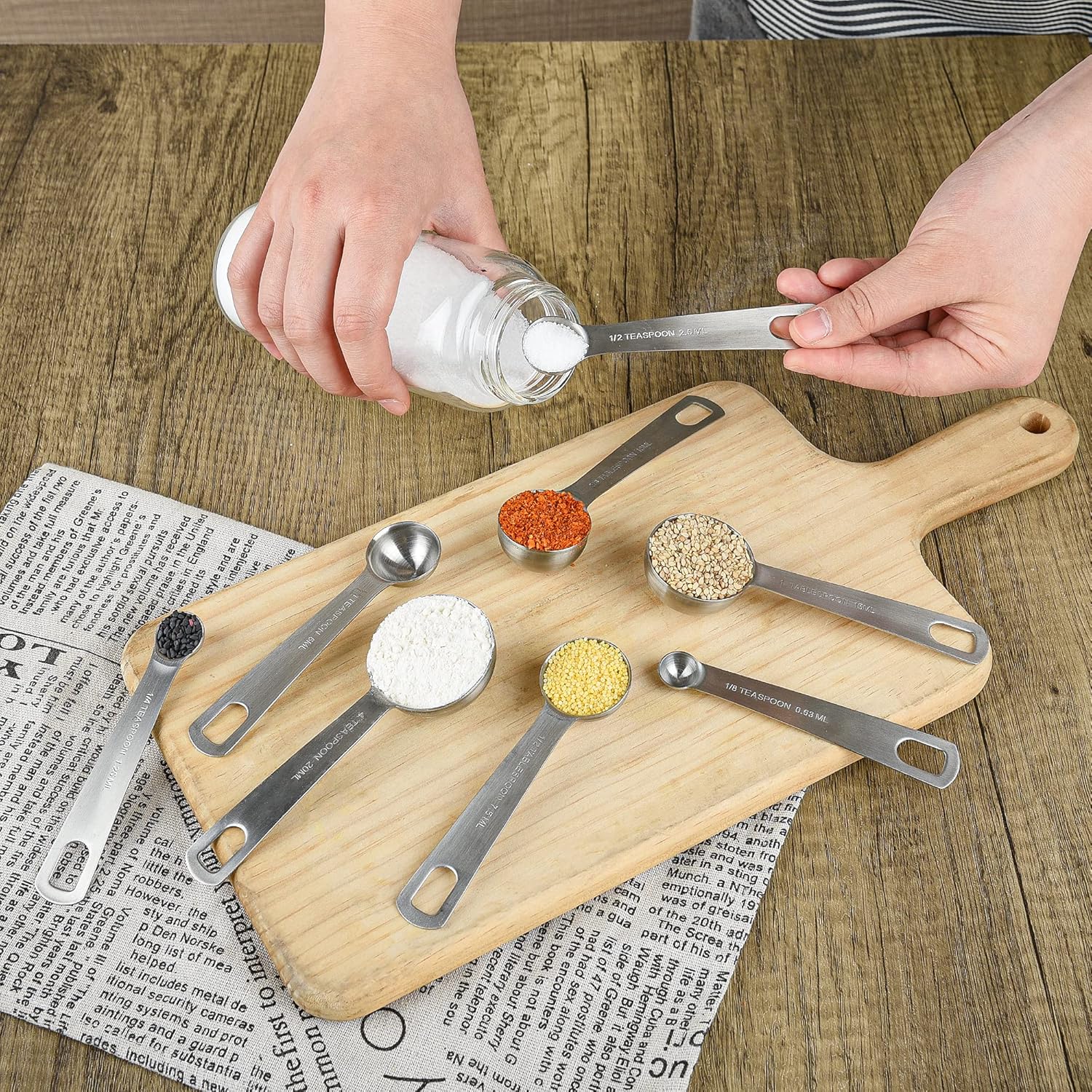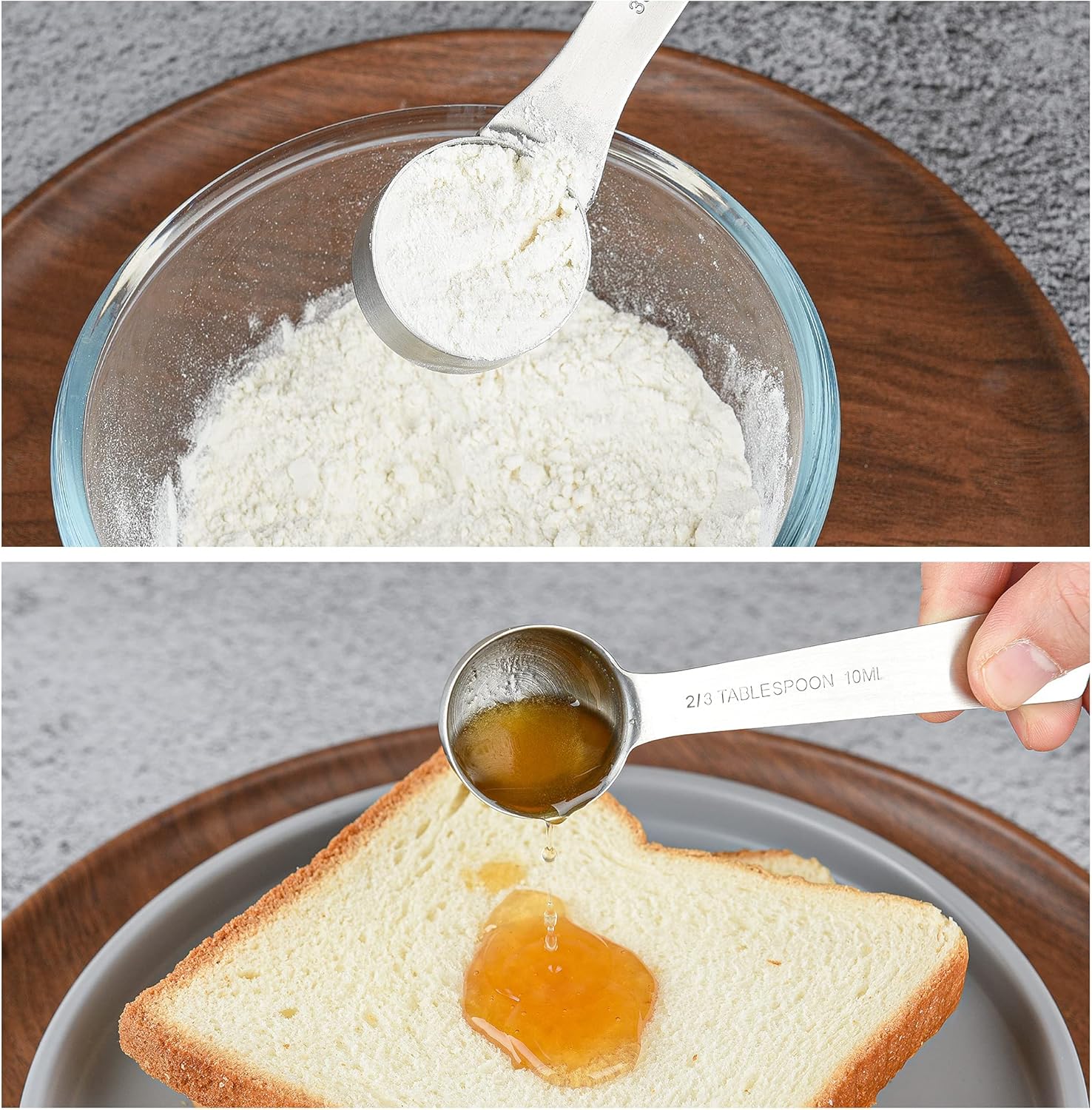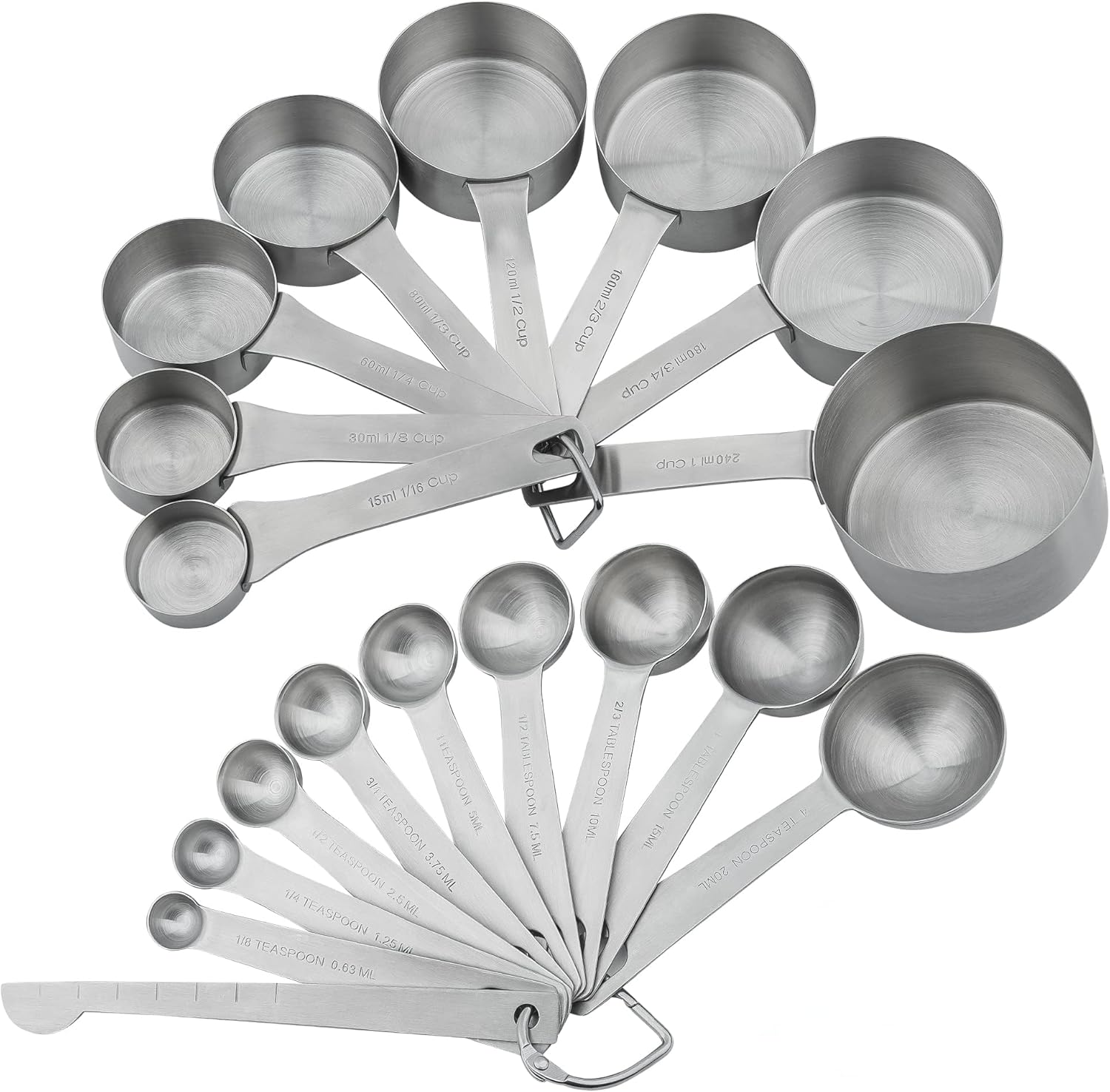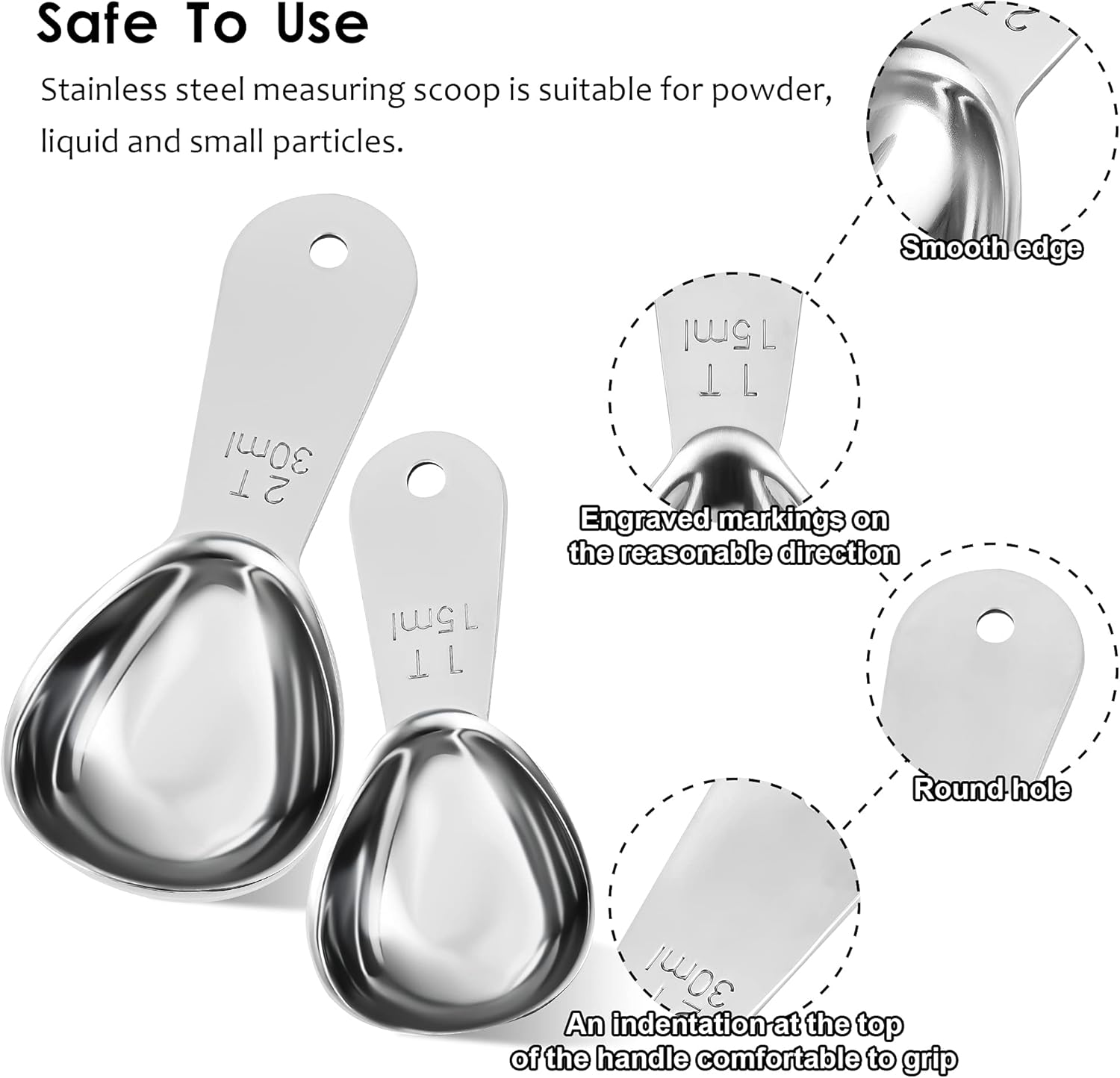 - ENGRAVED MEASURING MARKINGS – Every cup in this set <br>has the accurate measurements size in US and Metric <br>engraved on the handle clearly, what will help you reduce <br>any measuring errors for cooking or baking!