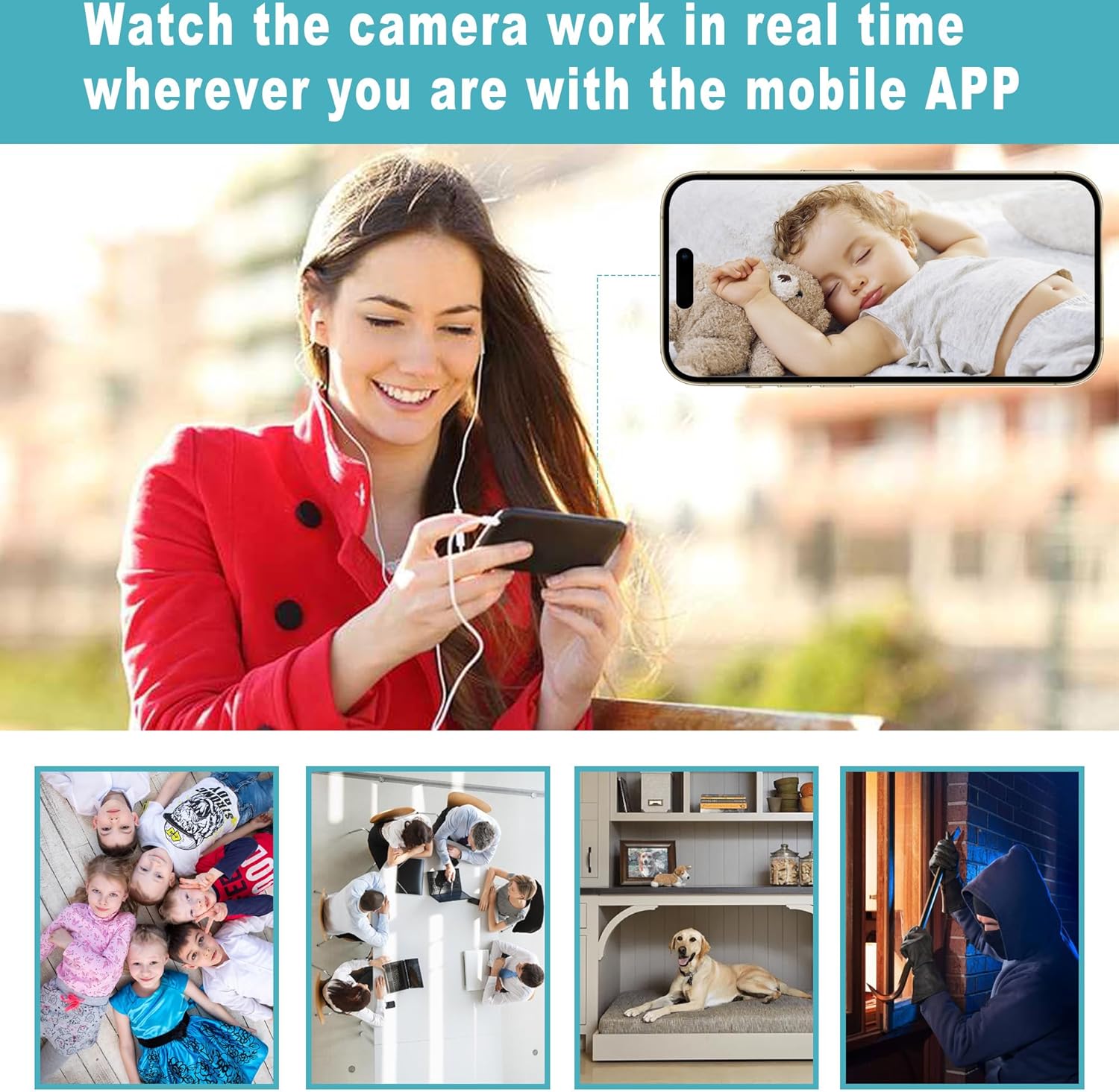 • Nanny camera supports working while charging. When the camera is connected to a power source, you can start 24-hour long-term monitoring. It can be installed on the wall to disguise as a smoke detector (but it does not have the function of a smoke detector)