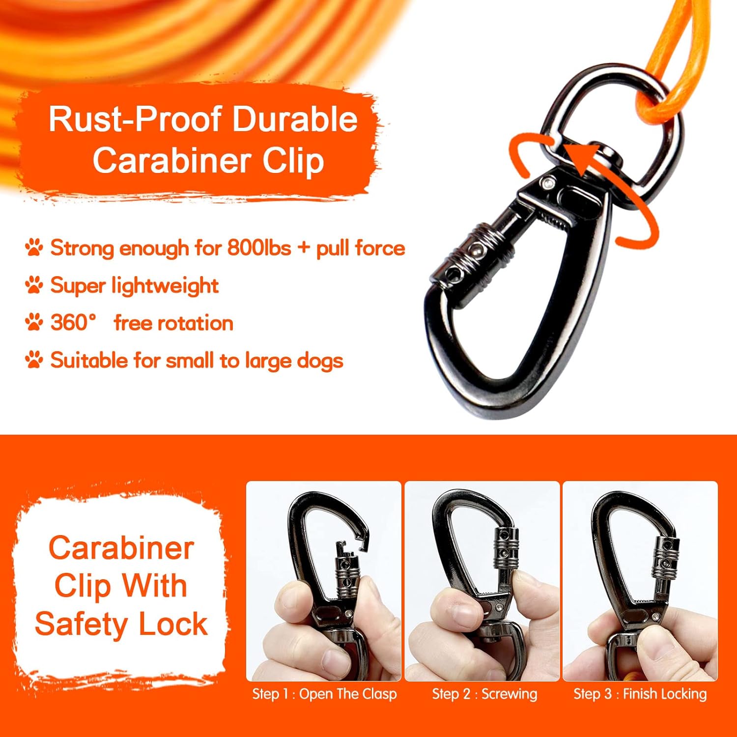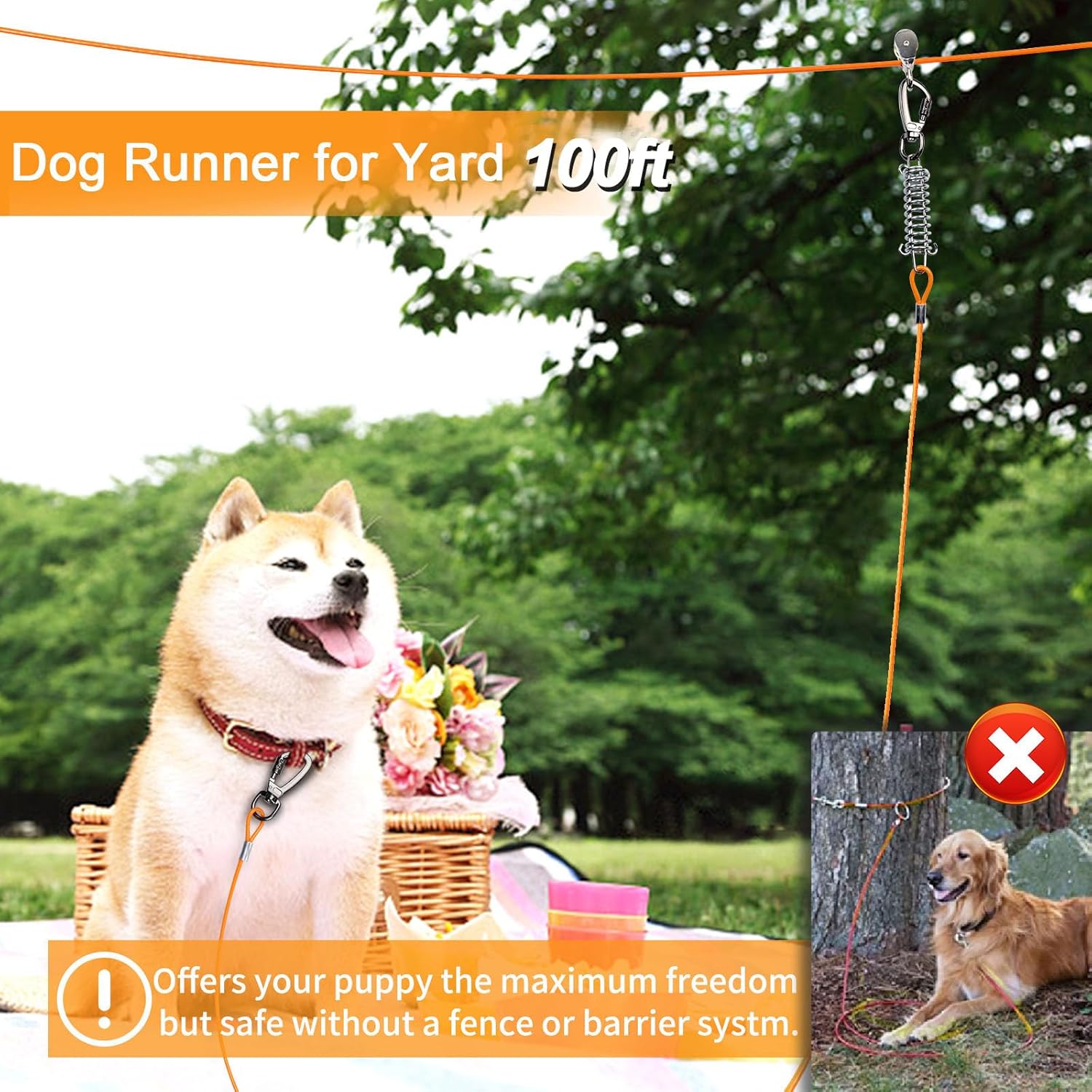 • 360° SWIVEL CLIPS: Enjoy the peace of mind of our super lightweight tangle-free swivel clips , your puppy will get more fresh air and sunlight and play out in your open yard.