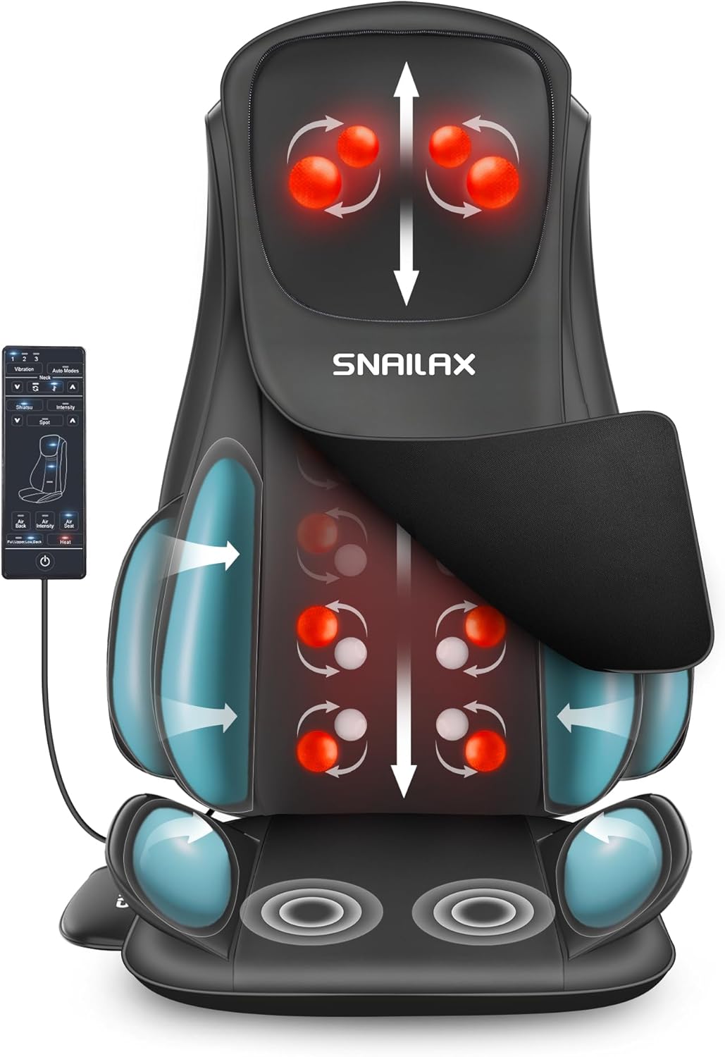 Snailax Shiatsu Neck and Back Massager with Heat Compression, Electric Massage Chair Pad for Neck Back, Massage Chair Full Body for Home Office Use, Gifts for Men, WomenPL17-B0DD3R4BCW