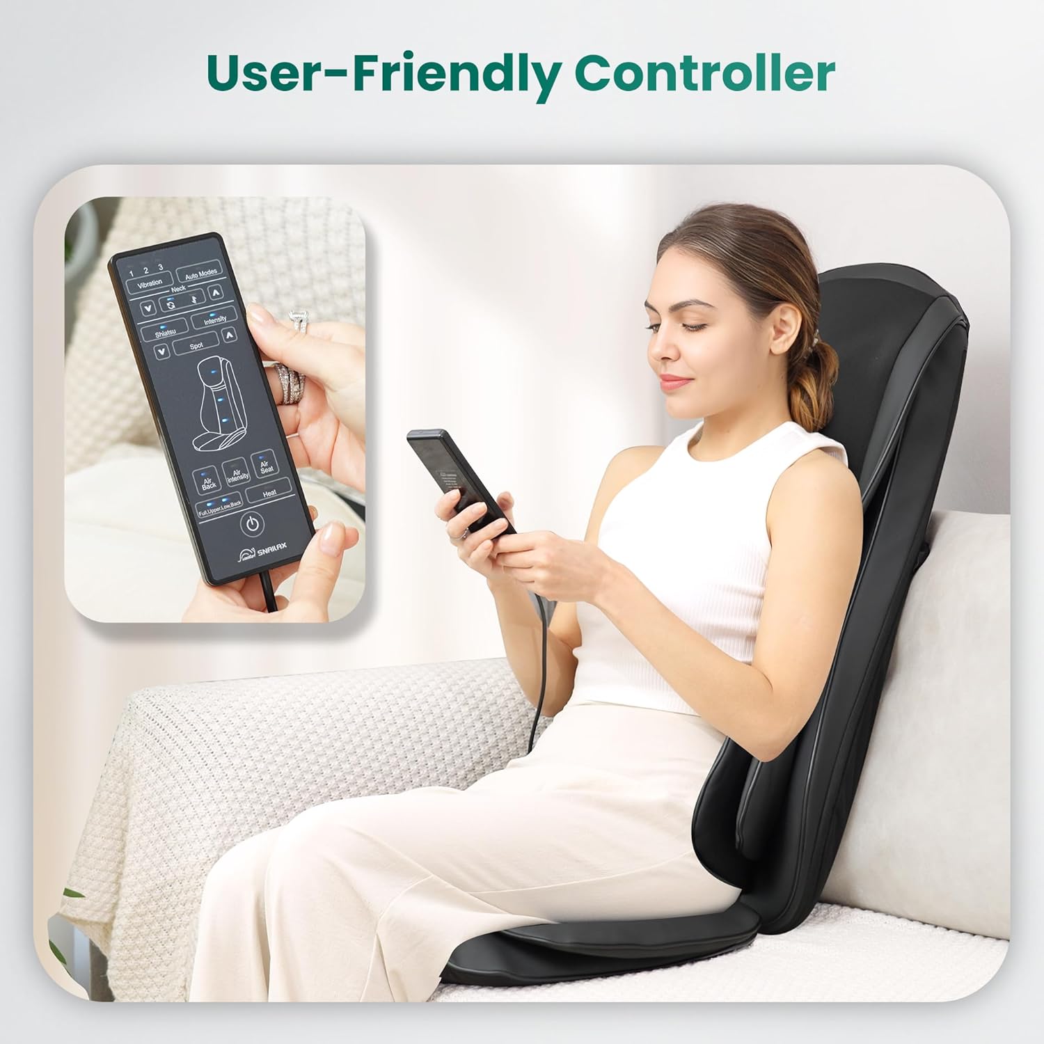 • Soothing Heat: This chair massage cushion offers soothing heat which could help you relax more. Heating on the neck and back warms you