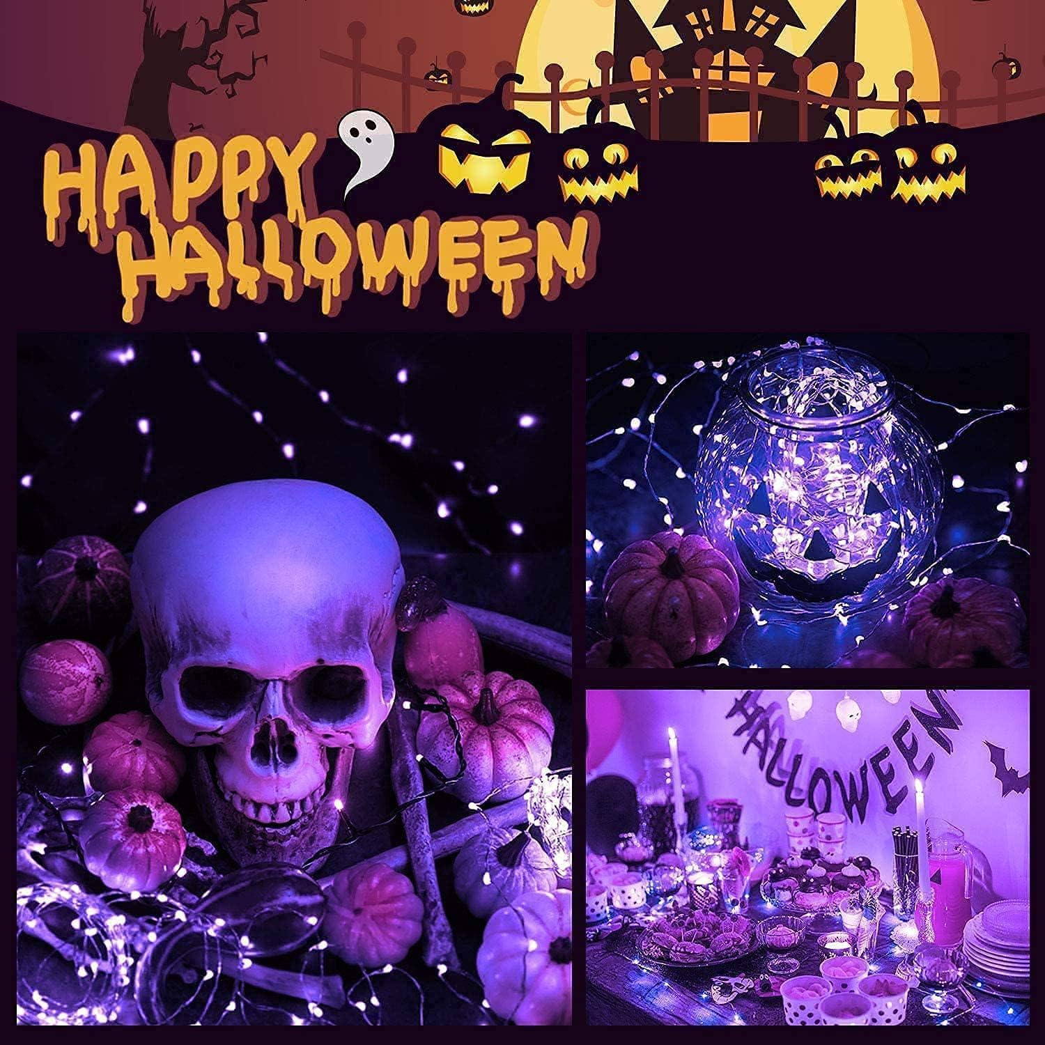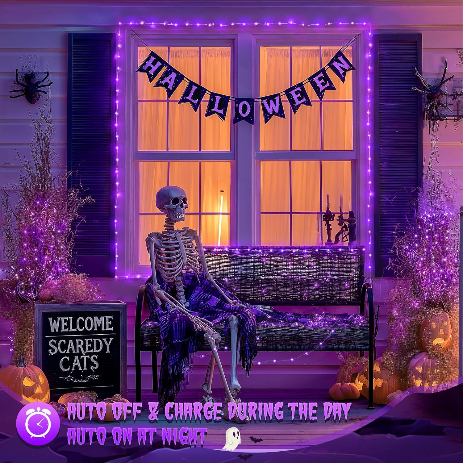 - 【AUTO Switch Orange & Purple Halloween Lights】 Orange & Purple fairy lights powered by solar energy, working up to 8 hours after 8-12 hours fully charged. Lights up automatically at night and off during the day