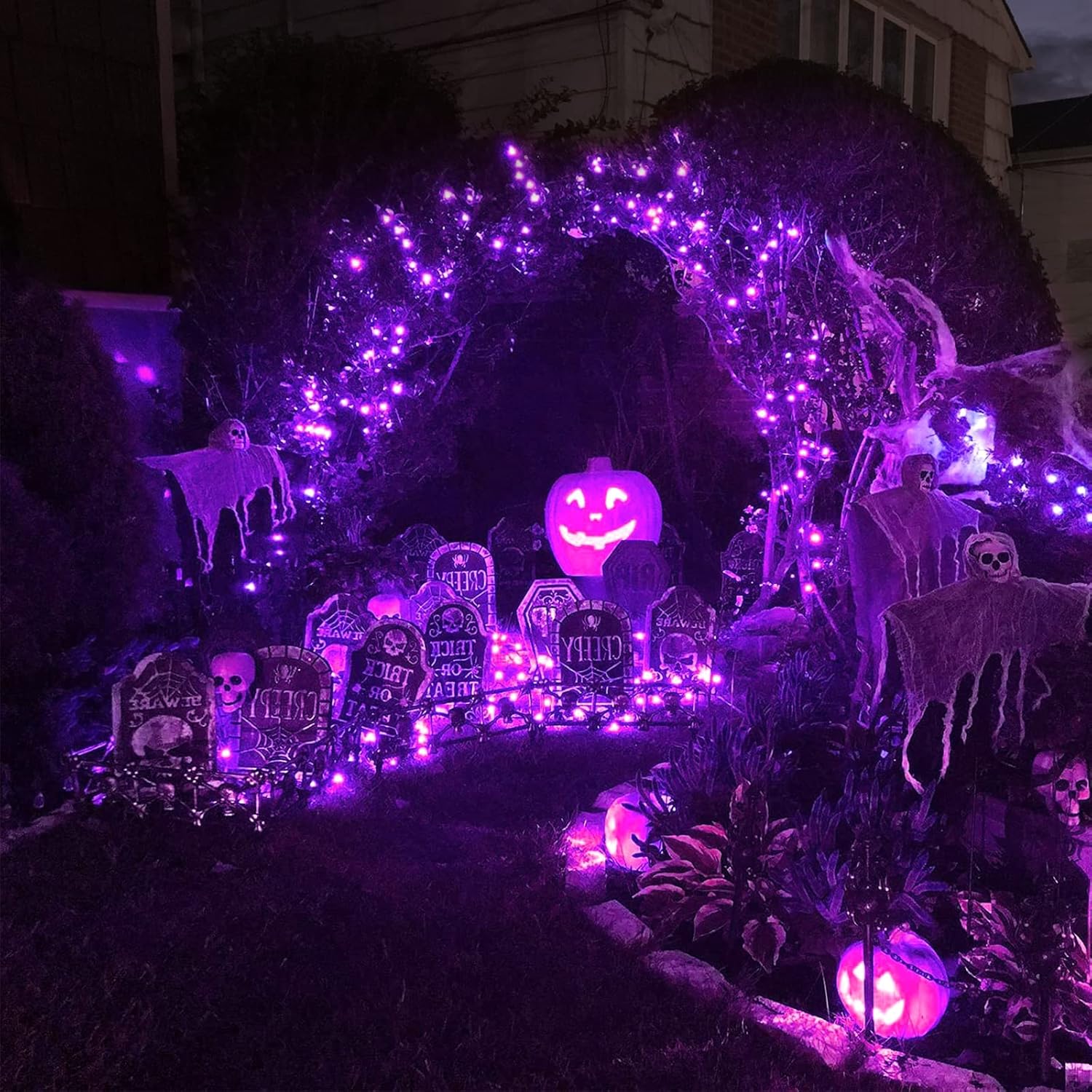 - 【8 Modes Solar Halloween Lights 】 8 modes which include Waves, Combination, Fading, Fireflies, Chasing, Twinkle, Fading slowly, and Steady-on. 8 Functions to fit different occasions, moods, feelings, holidays, festivals, anniversaries, Halloween decor. Especially suitable for Halloween decoration, creating a unique Halloween atmosphere