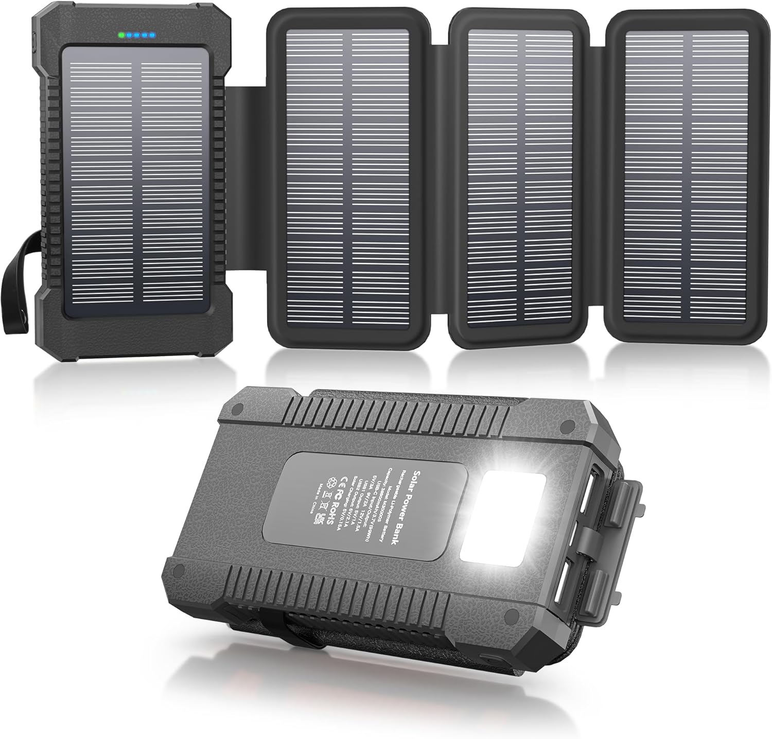 • 【4 Solar Panels】This solar charger power bank comes with 4 solar panels, using outdoor ecological solar energy to provide power for the charger, note: the charging efficiency varies depending on the angle and intensity of the sun.