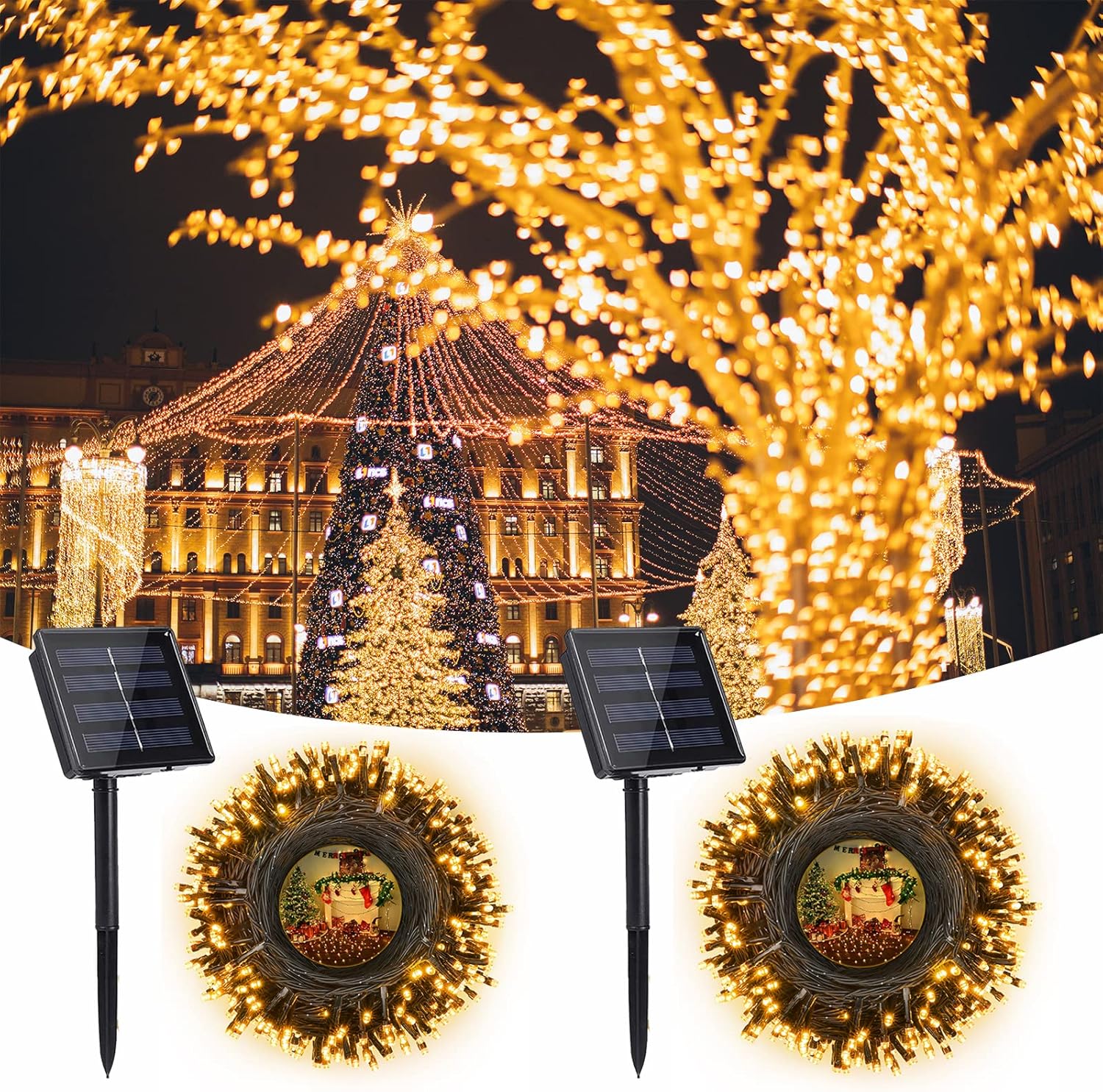 - 【Solar Powered & Auto On/Off】Solar energy supply, no extra utility electric cost, and no need to replace the battery. Light sensor controls the solar Christmas lights charging at daytime and auto on at dark