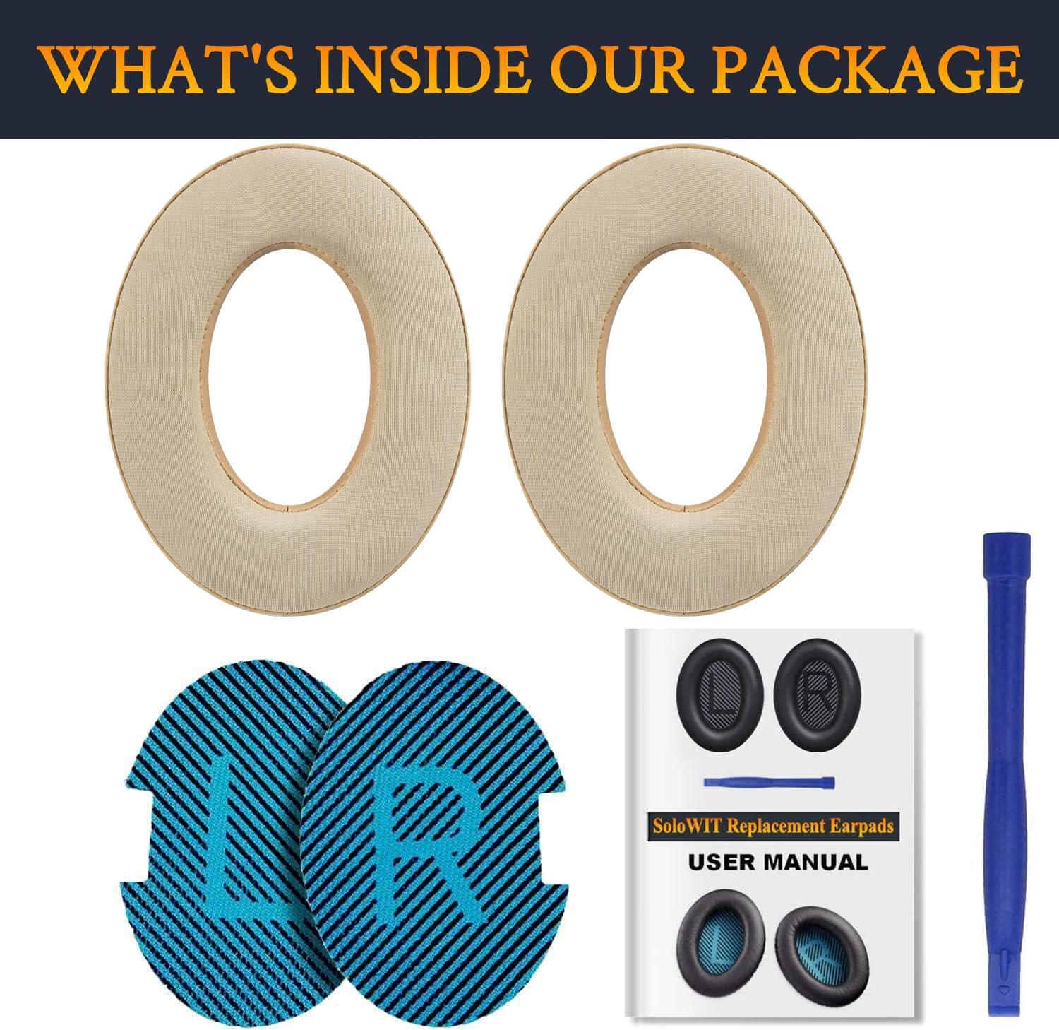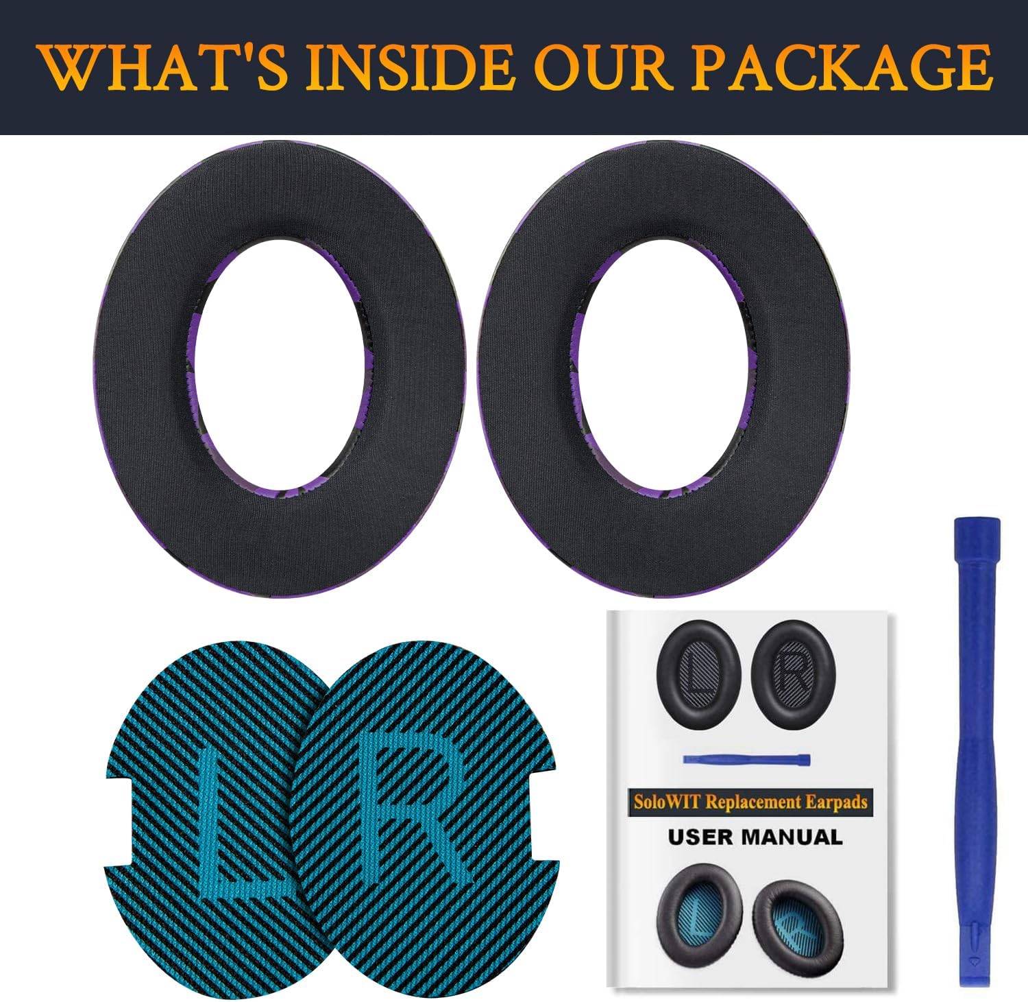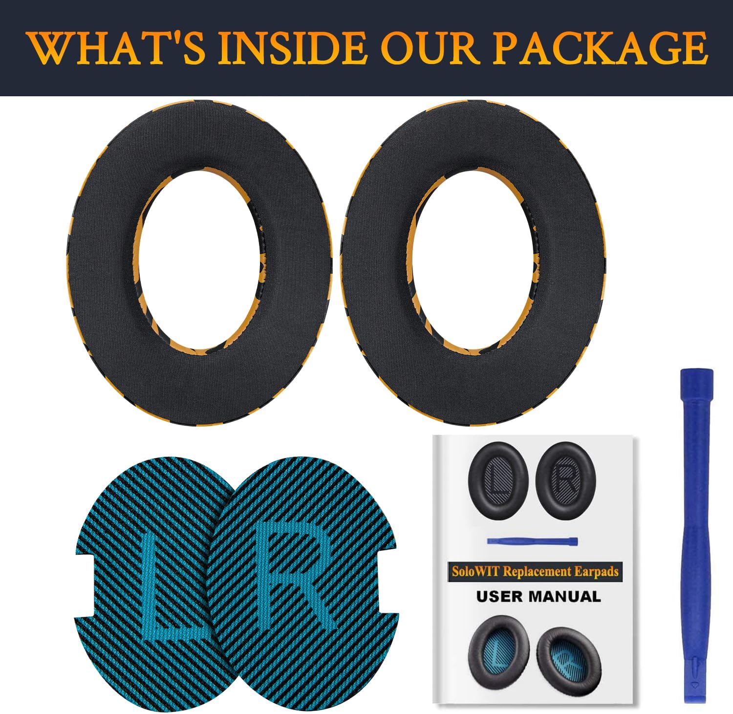 SoloWIT Earpads Cushions for Bose Headphones, Replacement Ear Pads for Bose QuietComfort 15 QC15 QC25 QC2 QC35/Ae2 Ae2i Ae2w/SoundTrue & SoundLink Around-Ear Series - QC25 PL Black&Blue