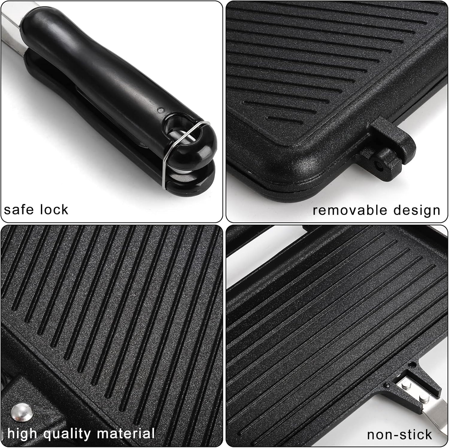 SOUJOY Sandwich Maker, Non-stick Grill Panini Maker Pan with Handle, Stovetop Toasted Aluminum Flip Pan Indoor Outdoor Camping Home Kitchen Breakfast