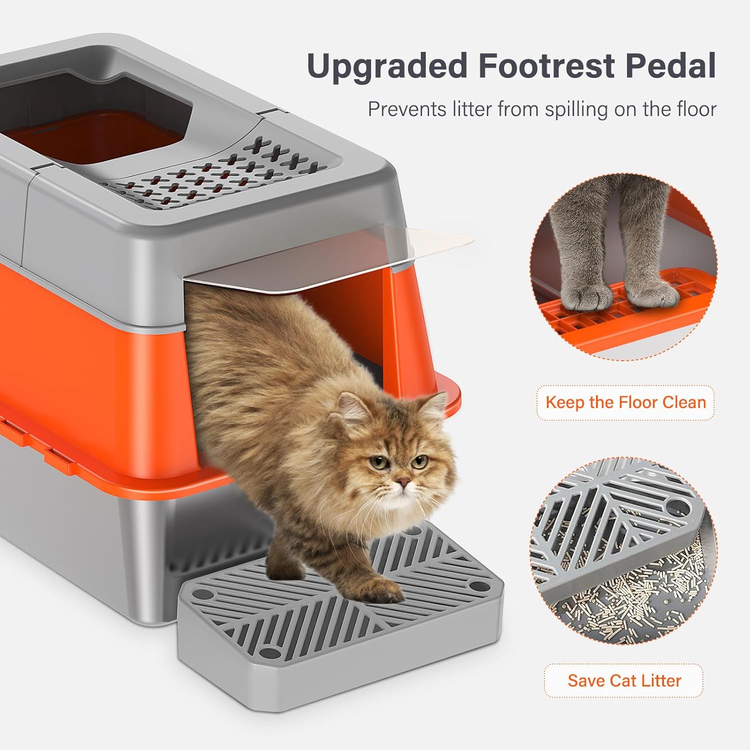 • 【Dual Entry Option】Designed with a flexible front door and a top exit for cats to move around more easily and comfortably, with a filter pedal that not only collects litter from cats' paws, keeping floors clean and saving on litter usage, but also makes it easier for older or short-legged cats to access the metal litter box