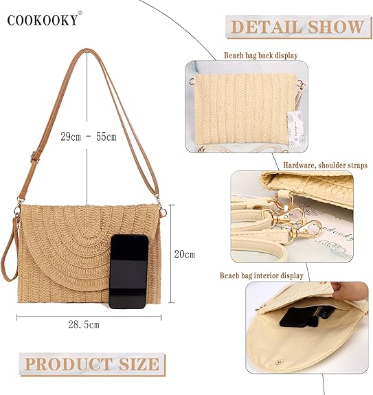 • Suitable for any occasion, like dinner, church, summer evening, beach wedding, and even daily use, so you can use it for leisure activities at night. Many buyers like this simple and elegant straw shoulder bag. They said it was a lovely nature, a very good woven straw handbag, they enjoyed it, they praised it a lot.