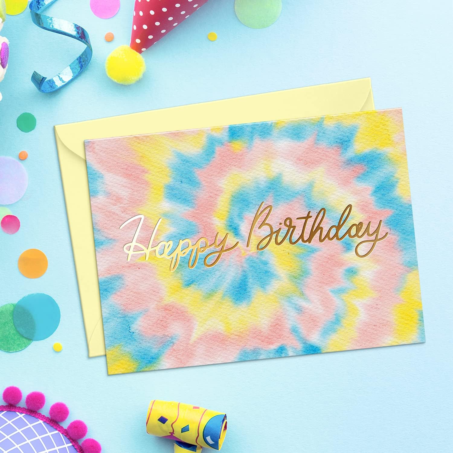 - With mix n match Envelopes and gold foil accents: Your assorted greeting cards come with luxury 120gsm envelopes in green, blue, purple or teal to match the birthday cards assortment. And many of the cards feature our gold foil print. It’s just a little bit fancy, and a lot of fun!