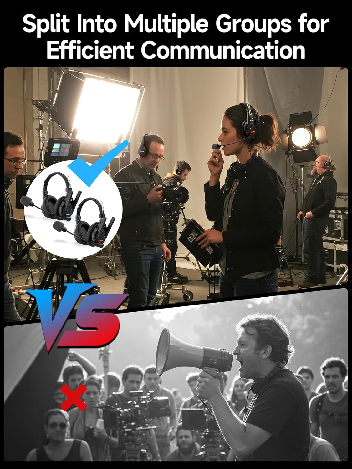 - Expanded Communication Range & Strong Signal: With 2 high-gain external antennas, Xtalk Xpro2 full duplex wireless communication headset provides a reliable 500m connection range and superior anti-interference capabilities, ideal for large-scale events like film shoots, conferences, and live sports. Enjoy instant, uninterrupted communication without reconnection delays.