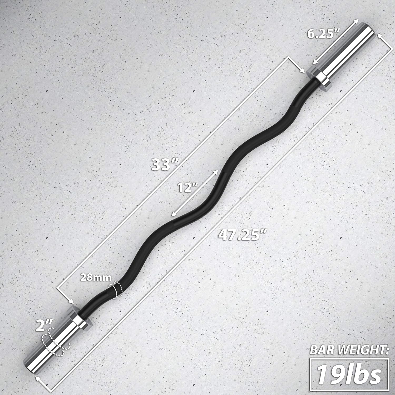 Synergee Commercial EZ Curl Olympic Bar Chrome & Black Phosphate with Powder Coated Brass Bushings Excellent for Bicep Curls and Triceps Extensions