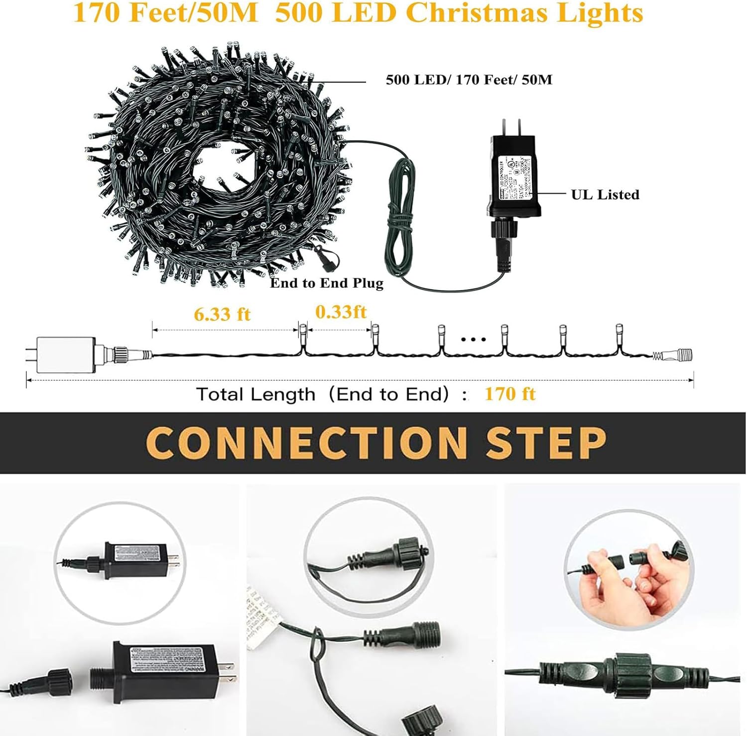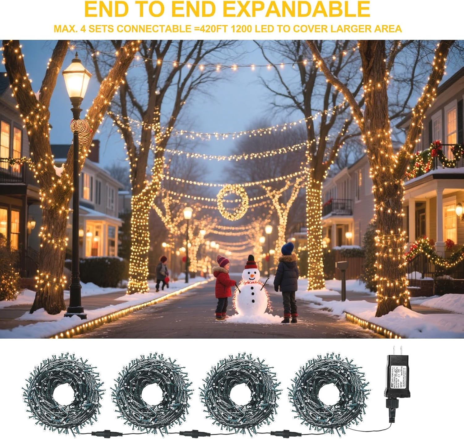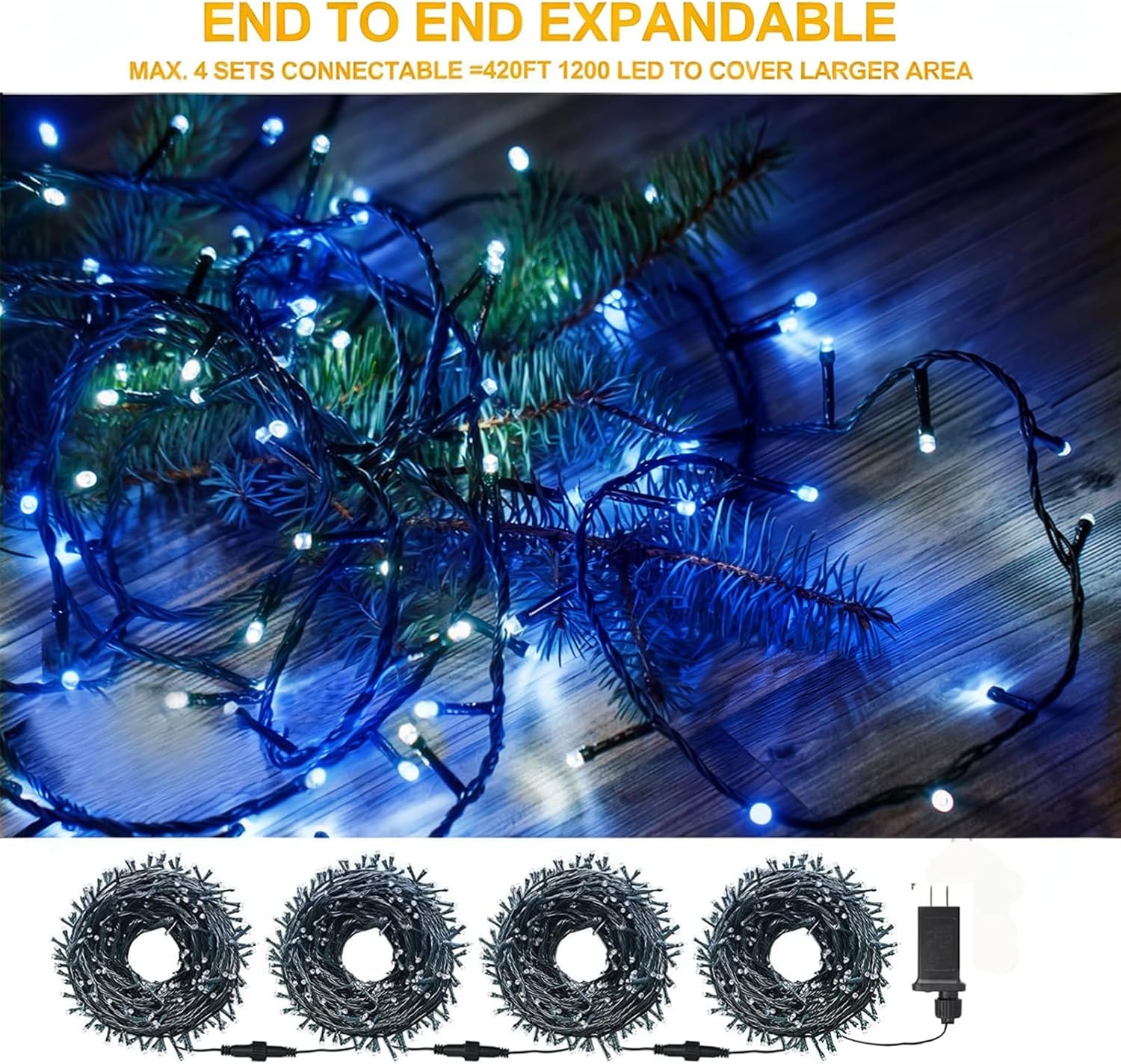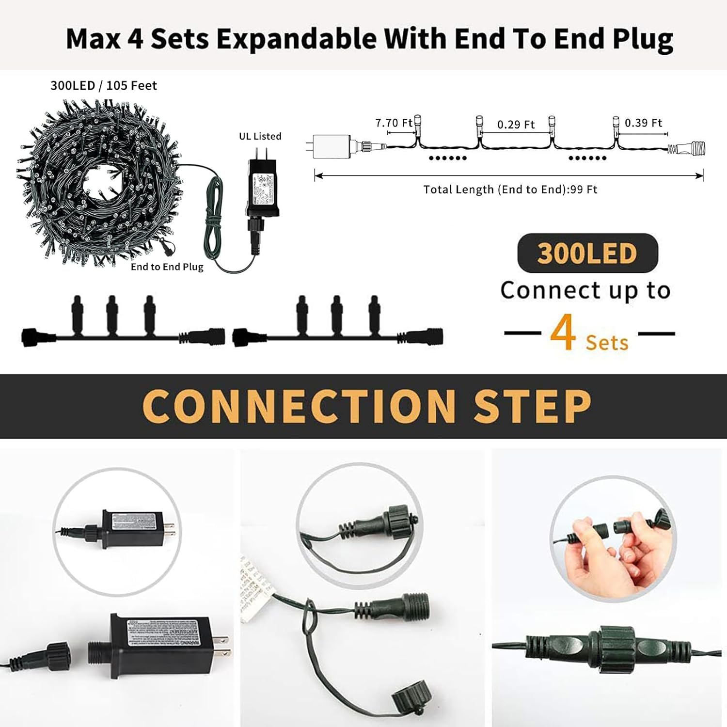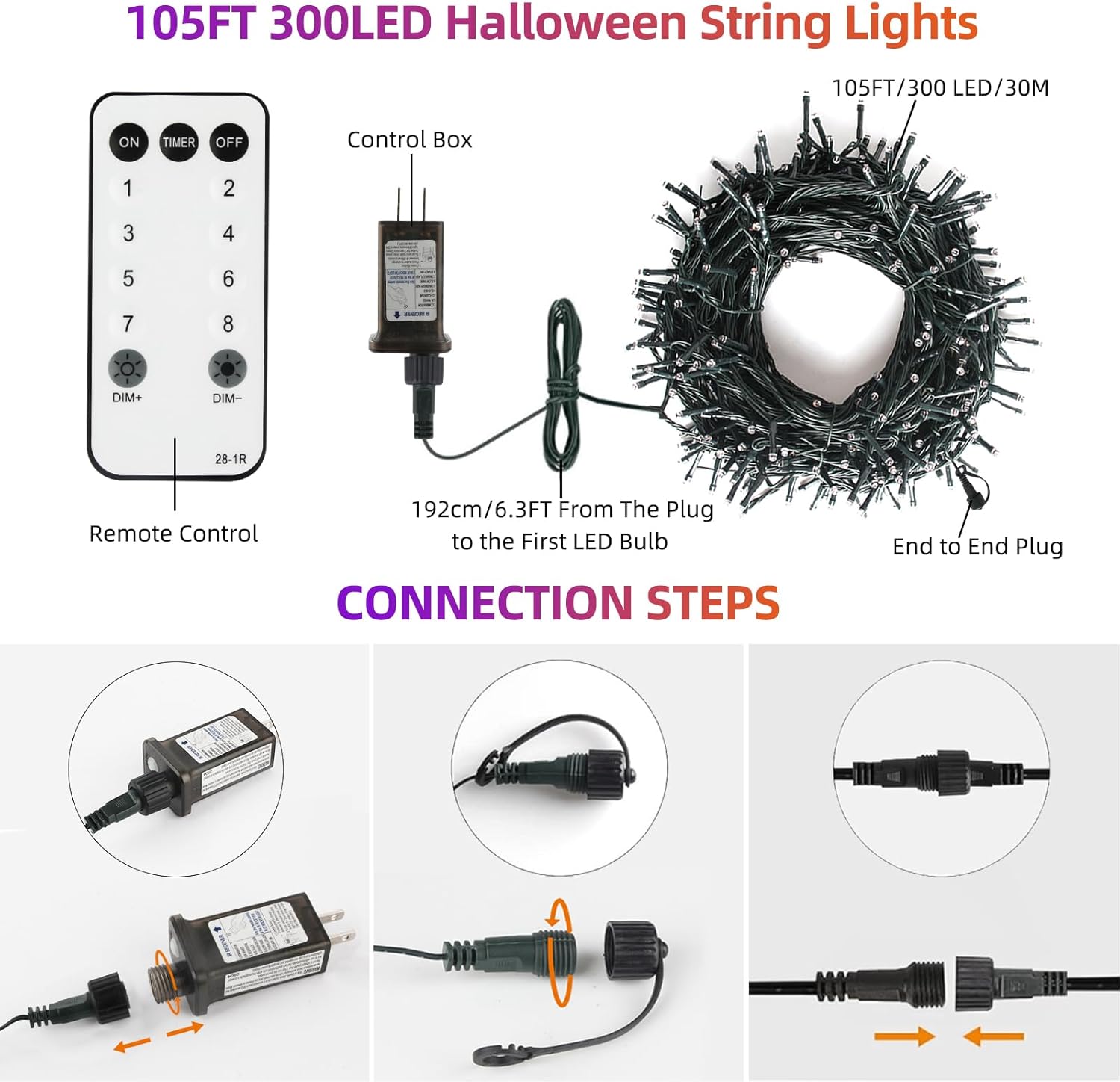 - 【3 Sets Connectable/IP65 Waterproof/ Durable/Safe Outdoor Indoor Lights】105FT Green Longer Sturdy Wire + 300 LED Bulbs, Each String Light Has an End to End Plug, Can Connect Max. 3 Sets (Total 315FT 900LED) for Large Area Coverage. Our purple orange halloween String Lights can withstand all weather conditions, Perfect for Outdoor Indoor Decorations. (The Power Adapter Is Not Waterproof, Please Cover it In Rainy Days).