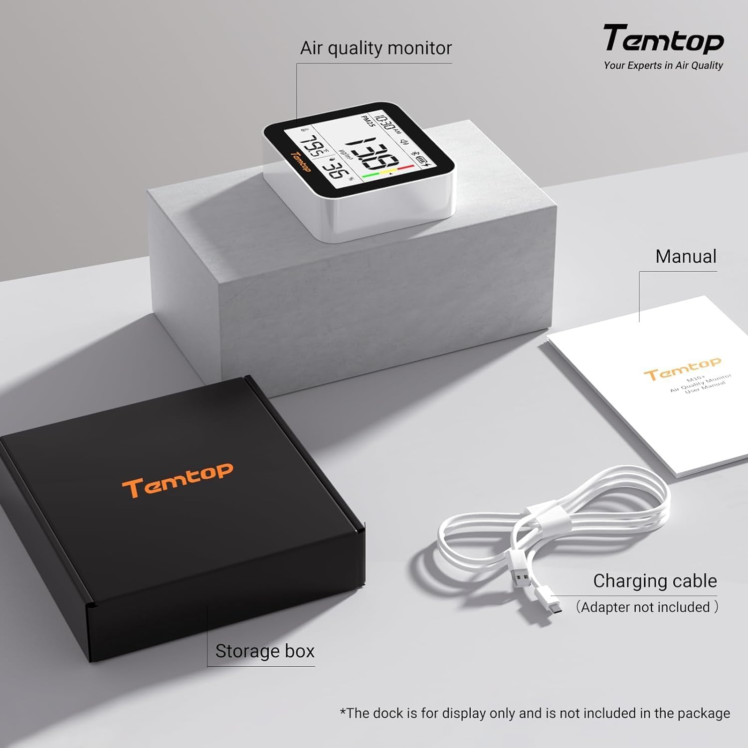 Temtop Air Quality Monitor Indoor with PM2.5, AQI, tVOC, CO2 Monitor, Temperature & Humidity Monitoring,Connectivity with App(‎M10 Plus)PL17-B0D76F9C4J