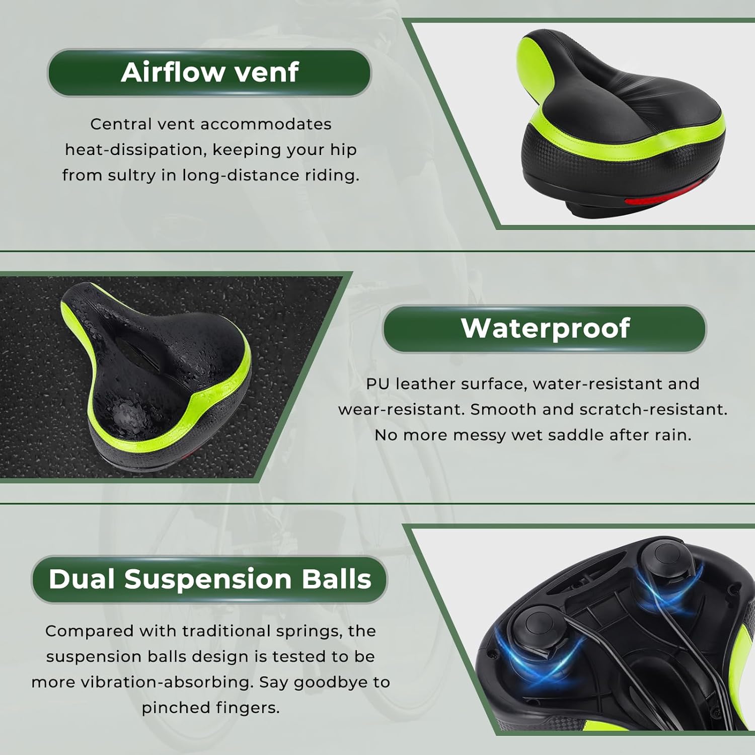 Dual Shock absorbing ball Bicycle Pad: Dual Shock absorbing ball Designed,Using double Shock absorbing ball in the bottom of cushion , good elasticity, toughness, larger endurance, flexibility, and easy to deal with rough terrain