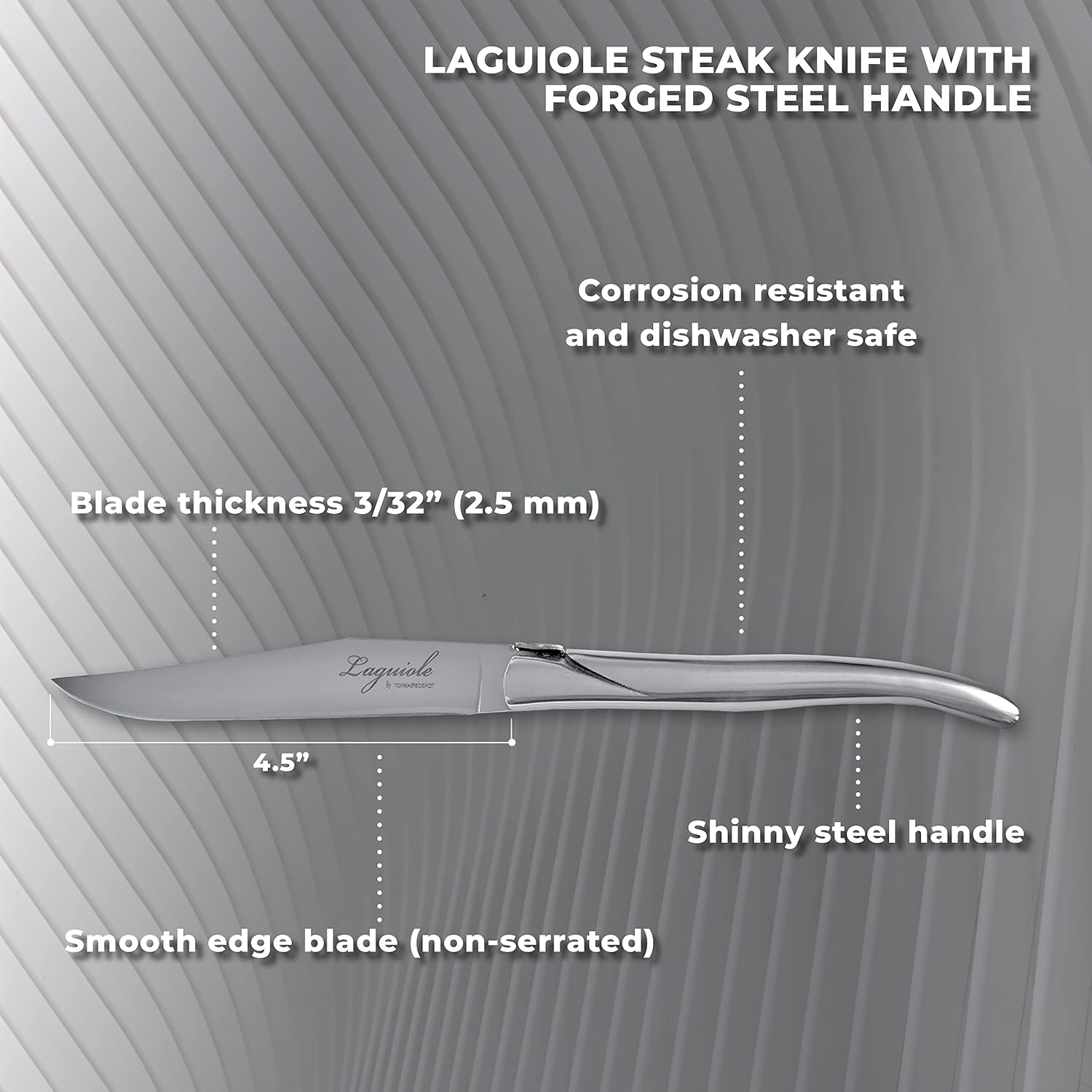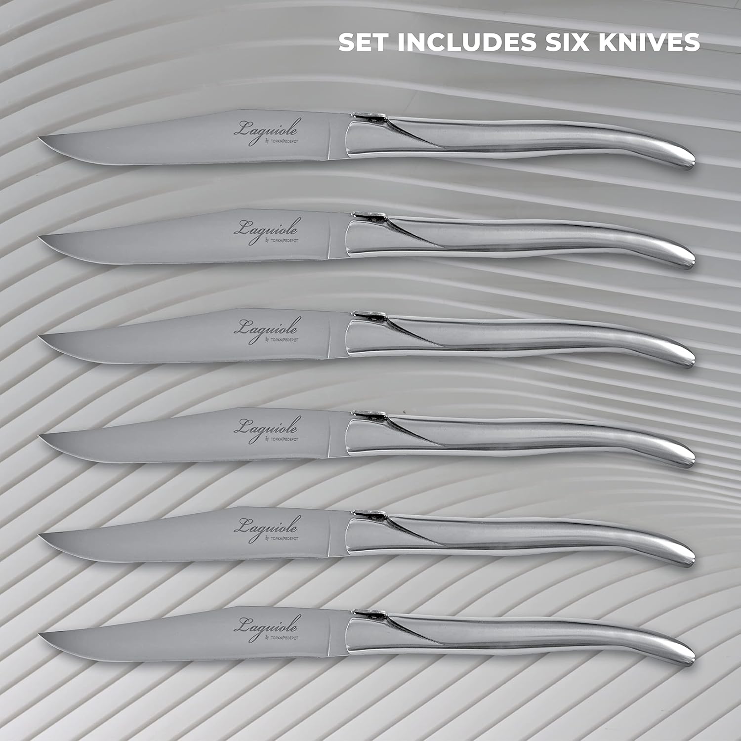 TopKnife Laguiole Forged Steak Knife Set (Set of 6) – Stainless Steel Handle - Gift Box Included