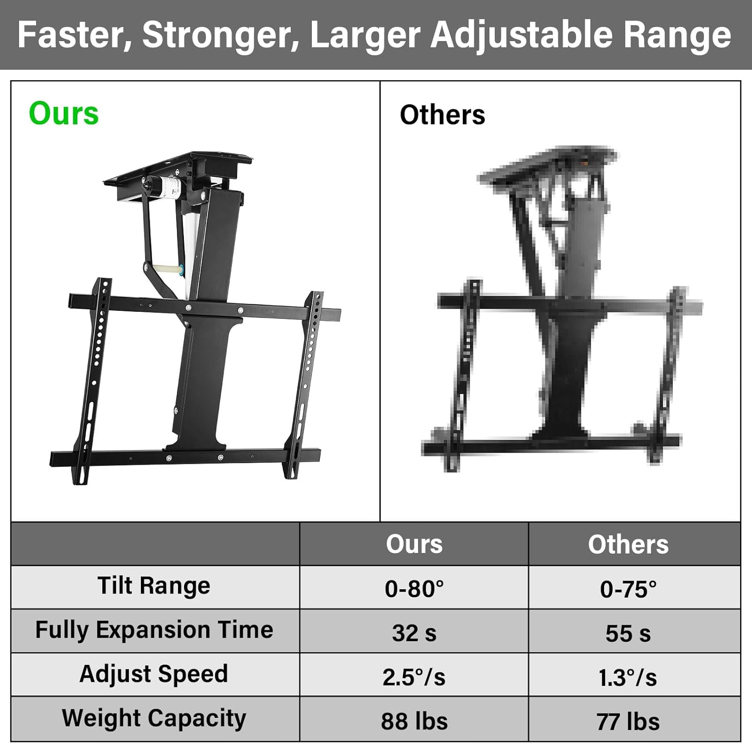 • TOPSKY Electric Adjustable Ceiling TV Mount with Remote, Motorized Flip Down Pitched Roof TV Mount for 32 to 70 Inch Flat and Curved Screen TVs (Black)
