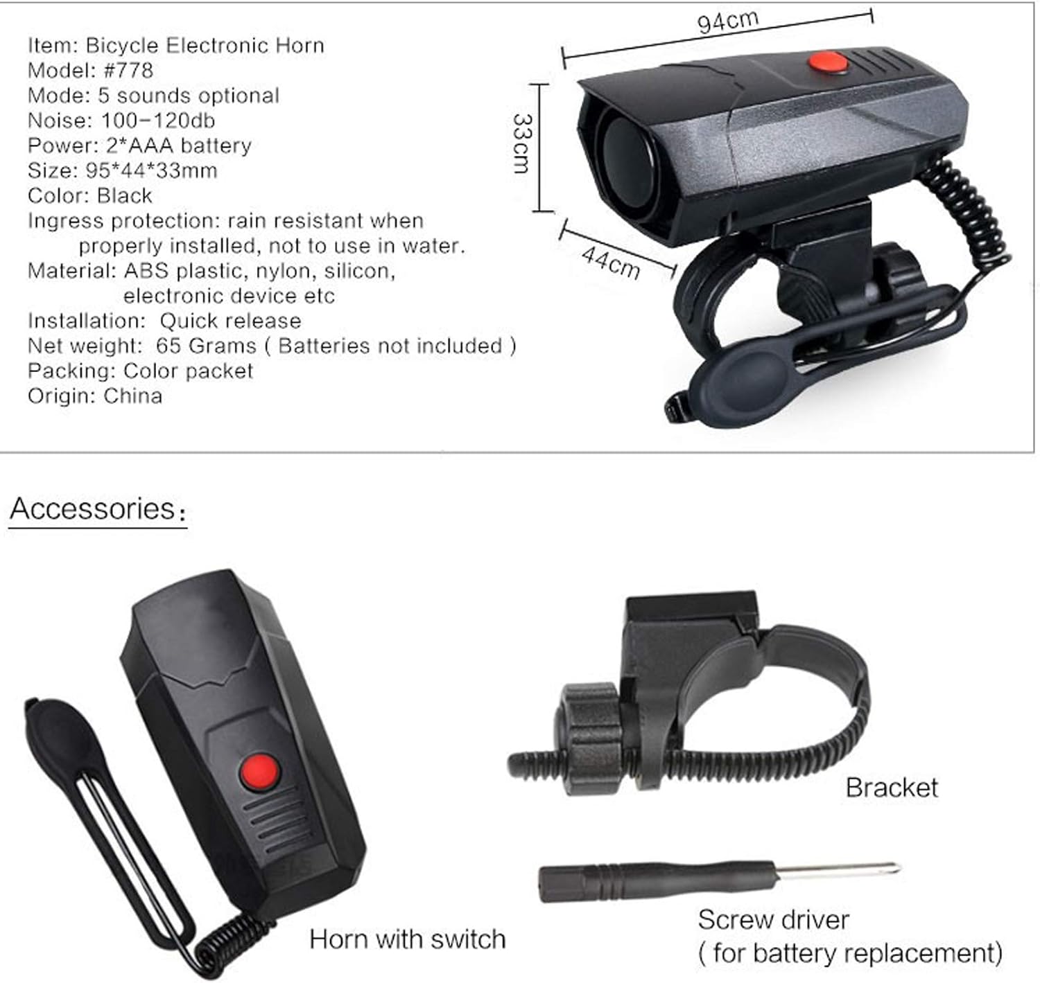 • Ergonomic control design - Separate control switch mounts within thumb's reach for effortless operation. Keep both hands firmly on the handlebars while activating the horn for safer cycling experience.