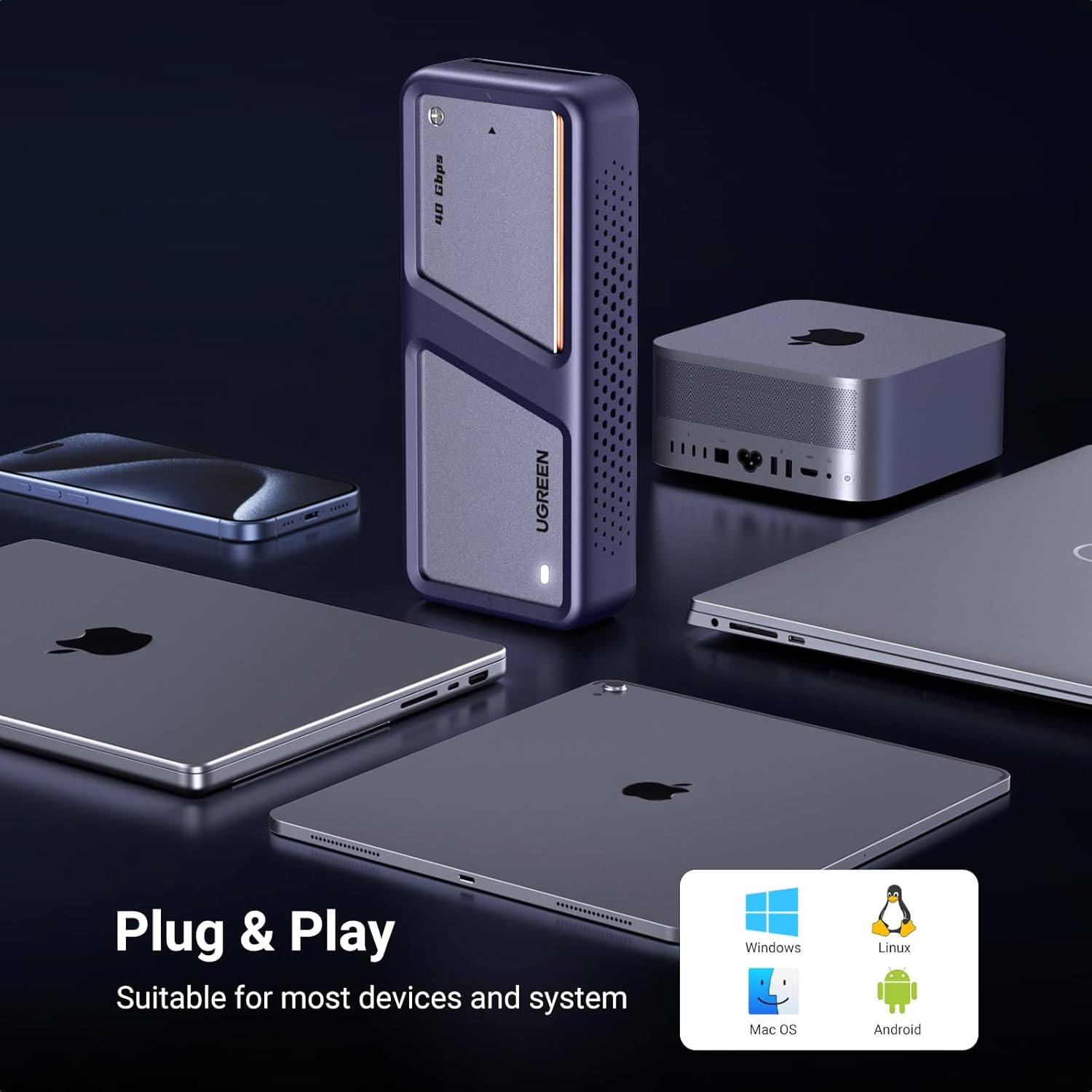 •  Compact And Portable: The NVMe case is small and easy to carry on. Whether you are having a meeting, traveling, need to work on the go, or recording your life, you can quickly export data and release your creativity anytime with UGREEN NVMe Enclosure.