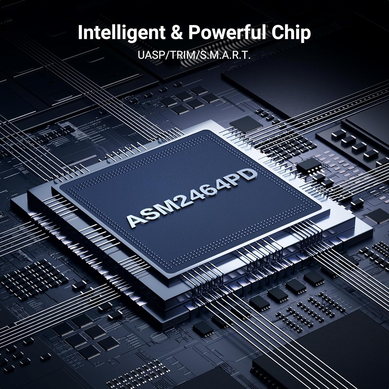 •  Blazing-Fast 40Gbps Transfer Speed: With the built-in ASM2464PD chip, support for UASP acceleration protocol, and equipped with a USB4-compatible Type-C interface, this 40Gbps M.2 NVME SSD Enclosure is compatible with USB4, 3.2, 3.1, 3.0, 2.0 and Thunderbolt 3 4. It achieves lightning-fast data transfers of up to 40Gbps, making it perfect for quickly transferring large files or backing up your computer