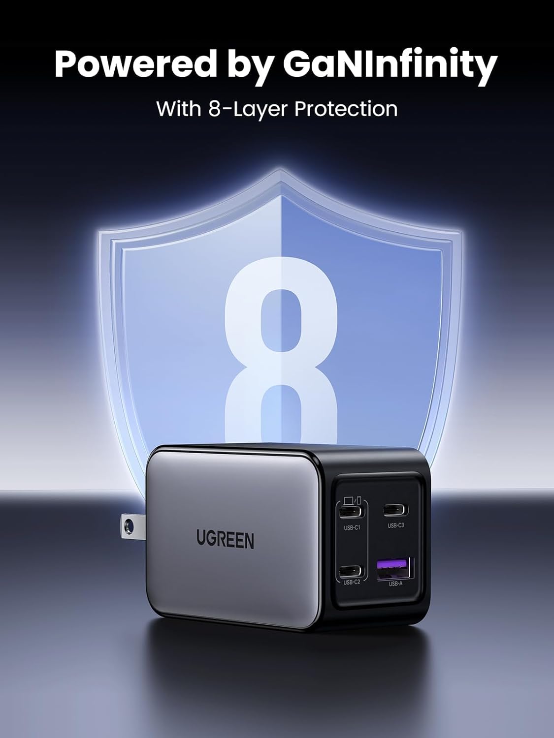 • GaN Technology for Safe Charging: Incorporating state-of-the-art GaN technology that is safer and faster, this 4-port power adapter can protect your devices from overcurrent and overheating