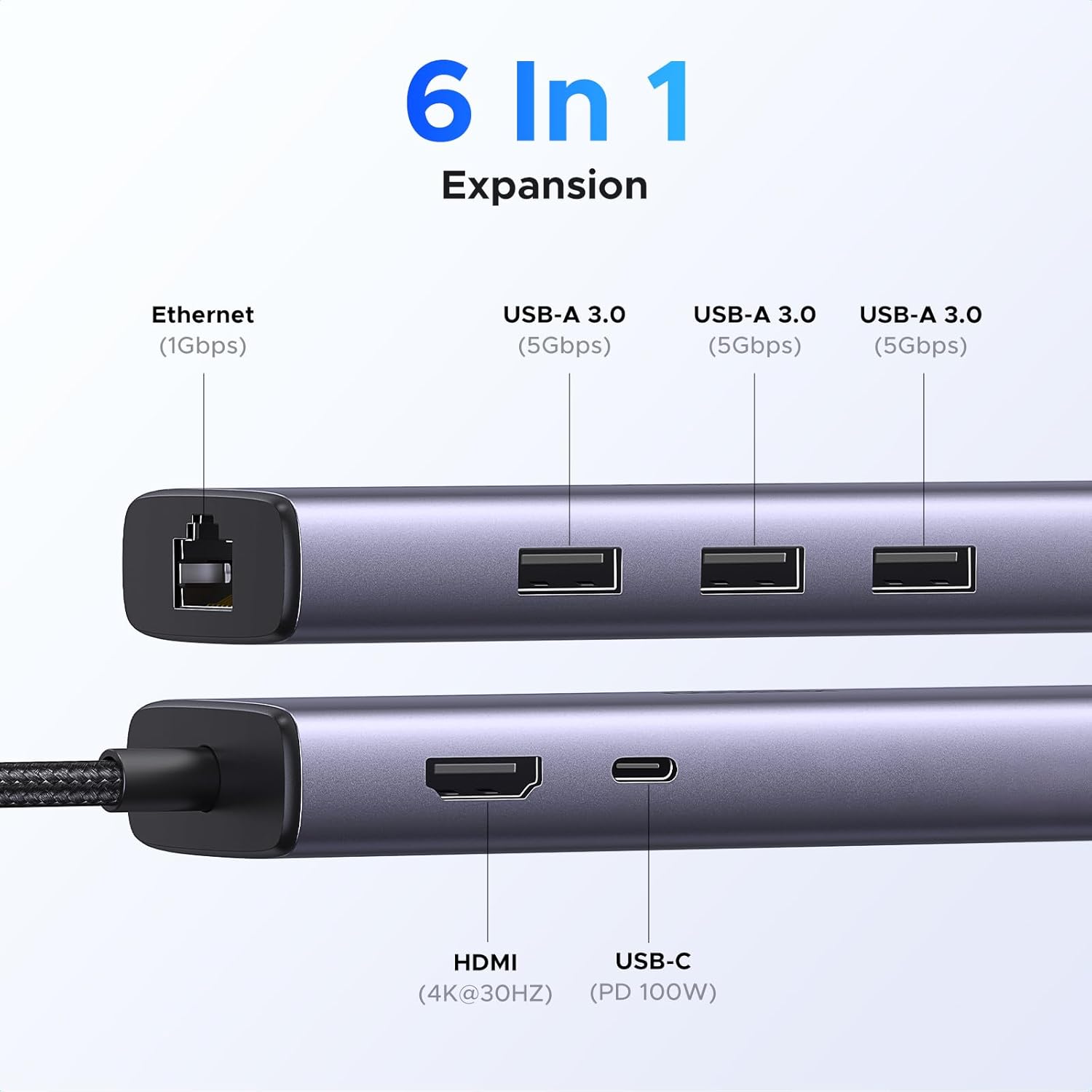 UGREEN Revodok USB C Hub 6-in-1, Type C Adapter with Gigabit to Ethernet Adapter, 4K HDMI, 100W PD, 3 USB 3.0, Compatible with MacBook, iPad, Dell, HP, Surface, Chromebook, Mac miniPL17-B0BW2TLQ8S