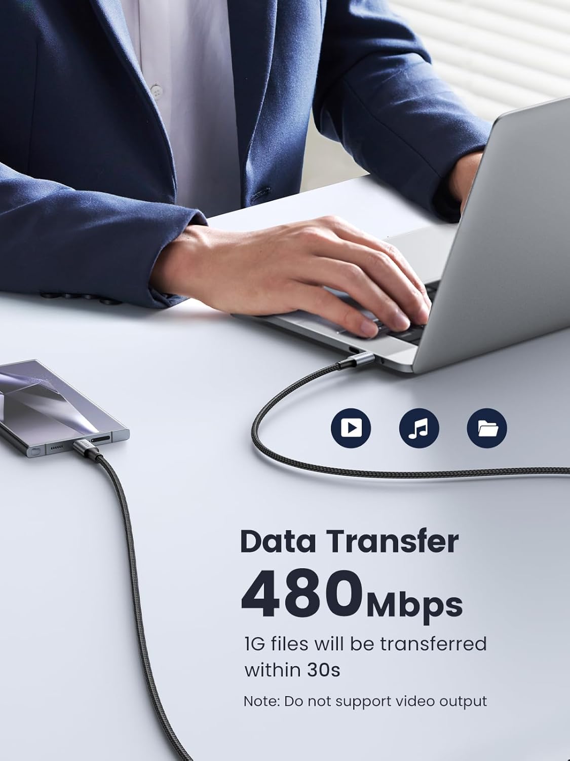 - Data Syncing: This 100W Type C to Type C cable Offers transfer speed up to 480Mbps USB 2.0, or transfer 1GB files in 30 seconds. Note: Not support Video Output and Monitors