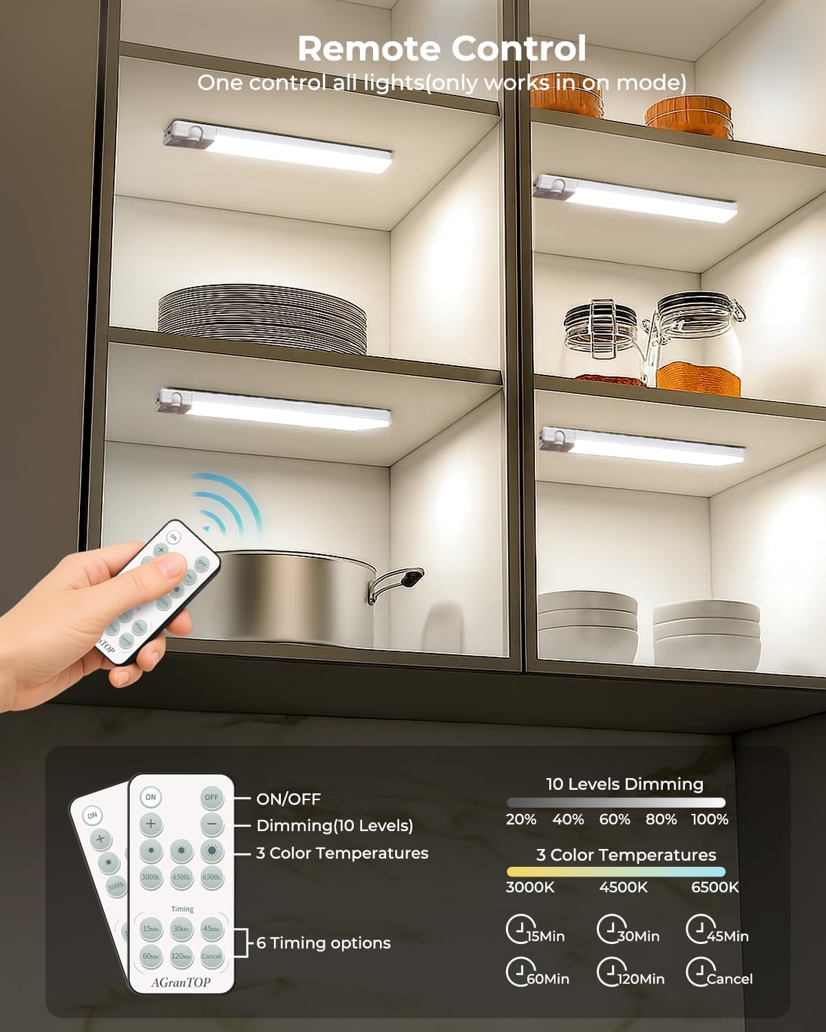 Purilite Select Motion Sensor Cabinet Light – Rechargeable LED Light Bar with 3-Color Modes, Remote Control & USB-C Charging for Closets, Kitchens & More