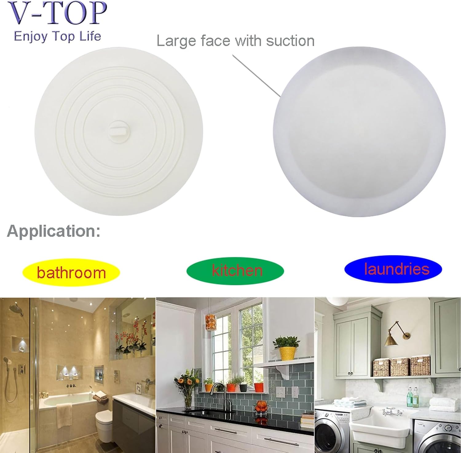 V-TOP Tub Stopper 2 Pack, 6 inches Large Silicone Drain Plug Hair Stopper Flat Suction Cover for Kitchen Bathroom Accessories and LaundryPL17-B076JD153W