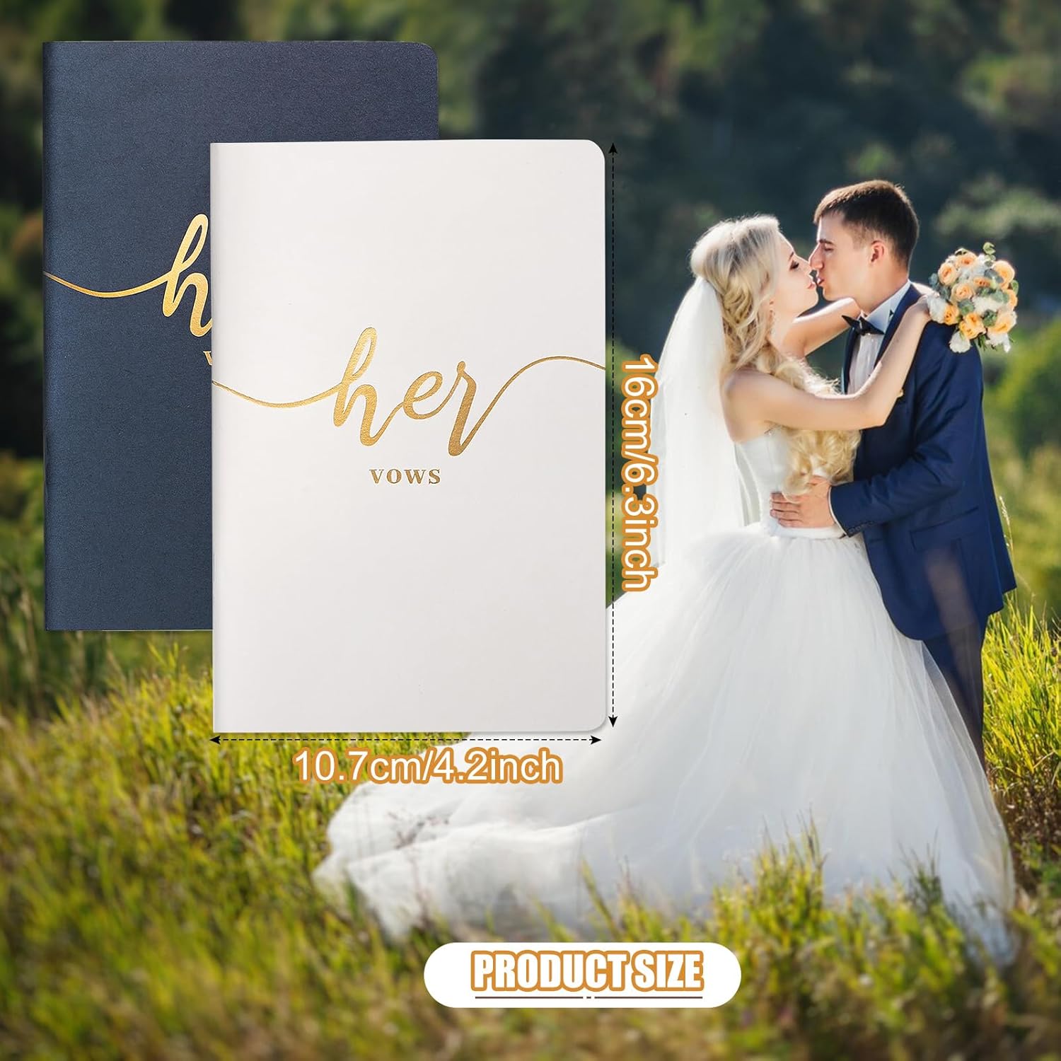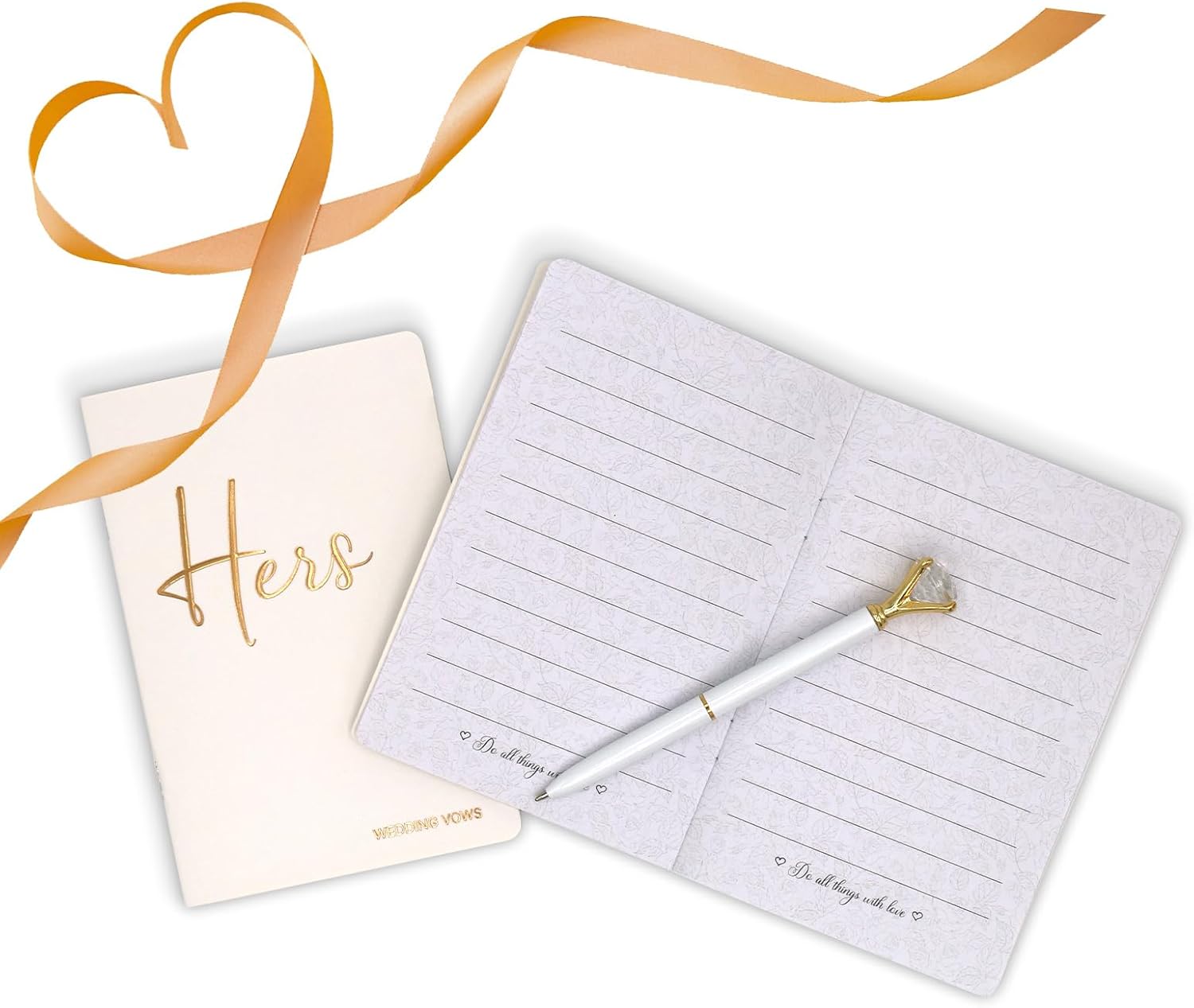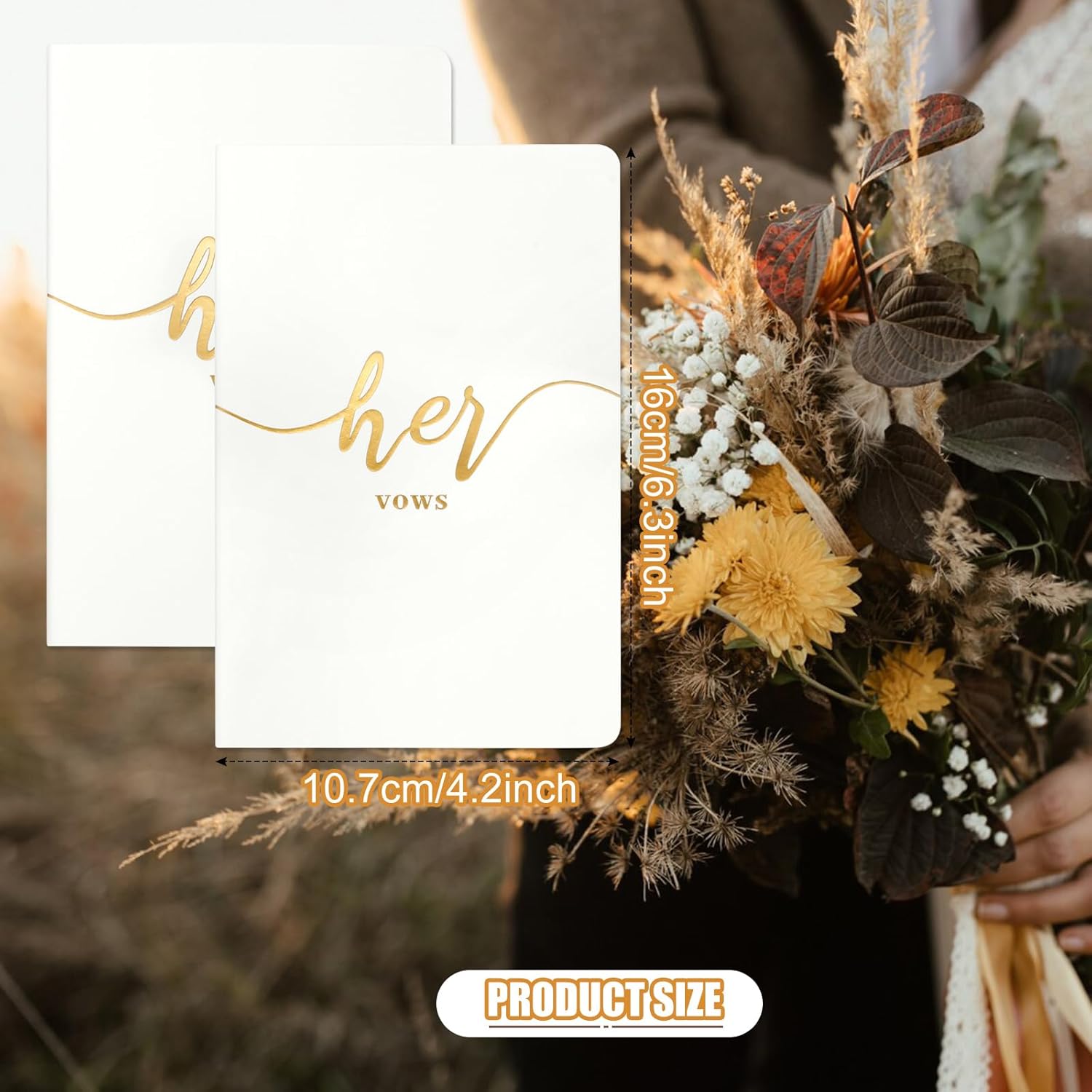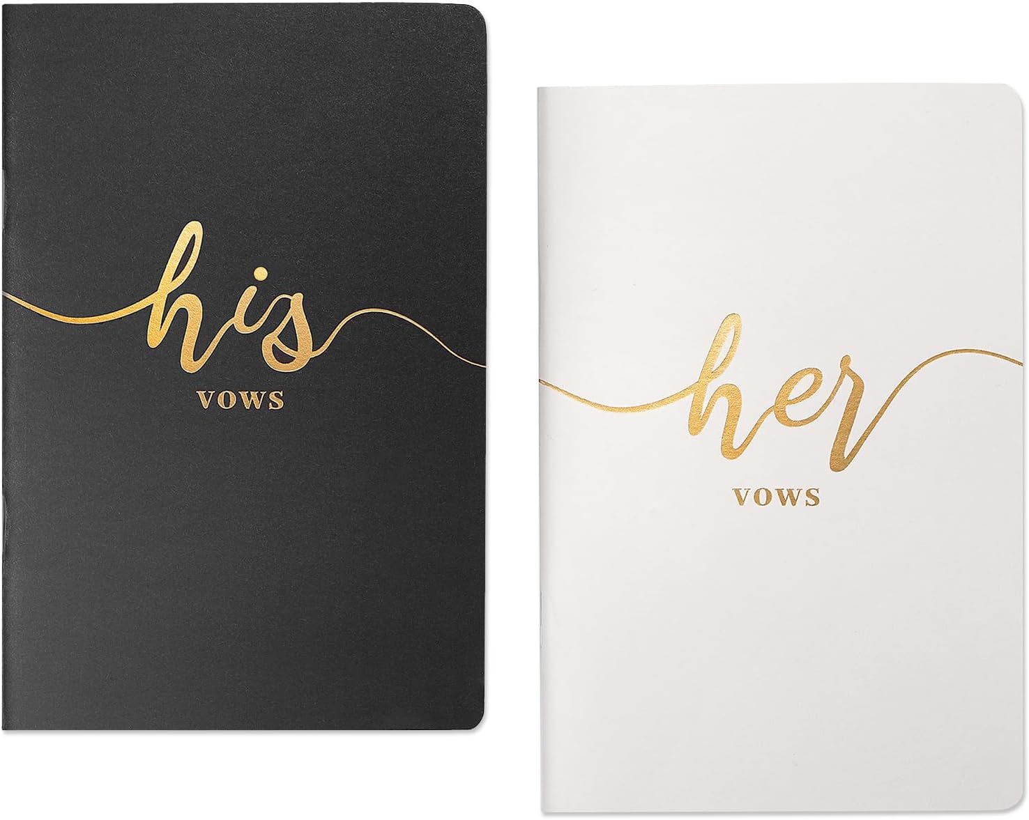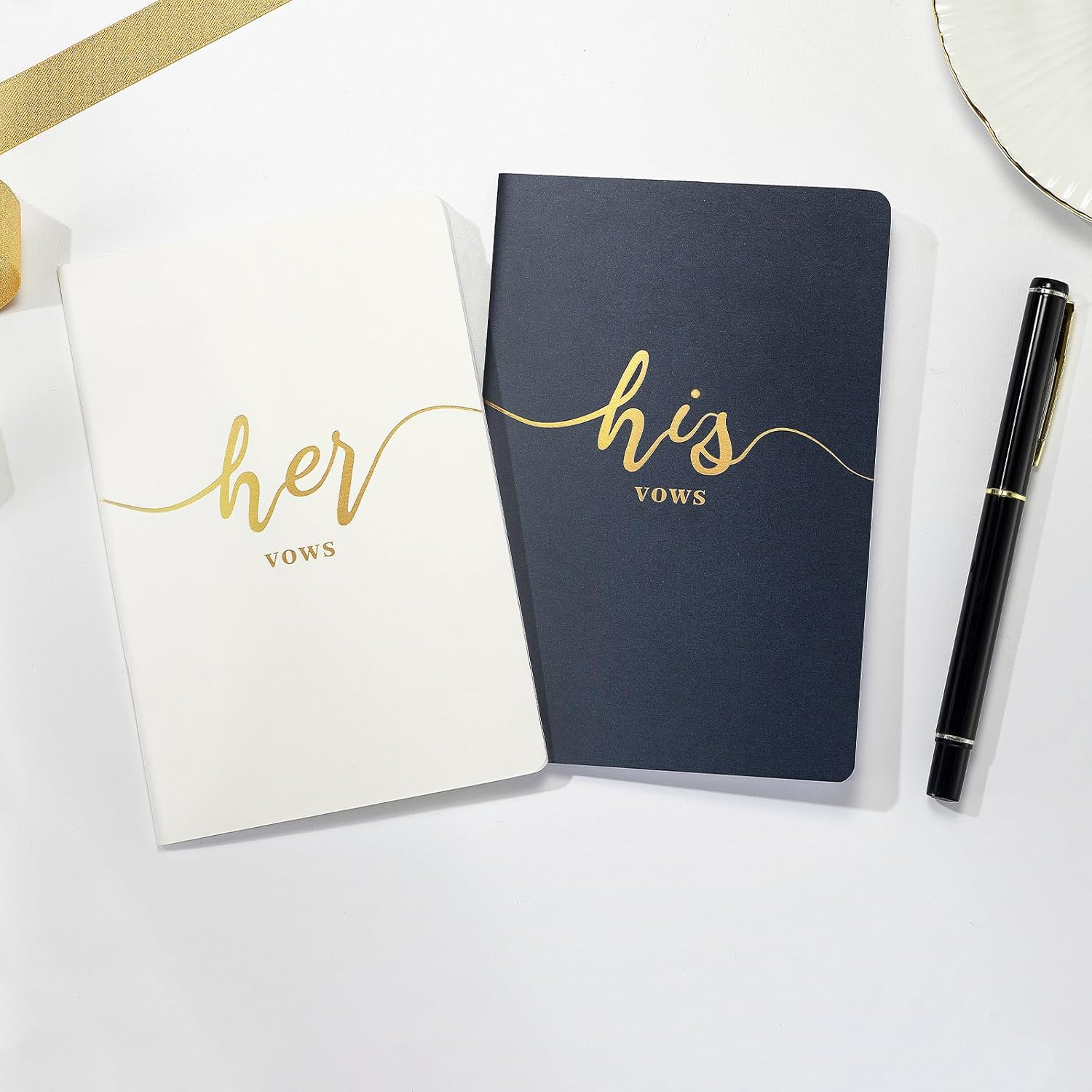• Vekola wishes you a happy wedding in advance:Set of 2 his and her vow books, words pattern stamped in gold foil on covers.