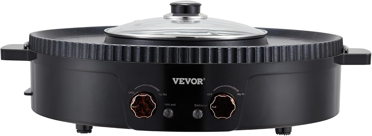 VEVOR Hot Pot with Grill, 1800W 2-in-1 Electric Smokeless Grill and Hot Pot, Korean BBQ Shabu Shabu Hotpot with Separate Dual Temperature Control, Non-Stick Pan, for 2-8 People Family DiningPL17-B0F63RXCBX