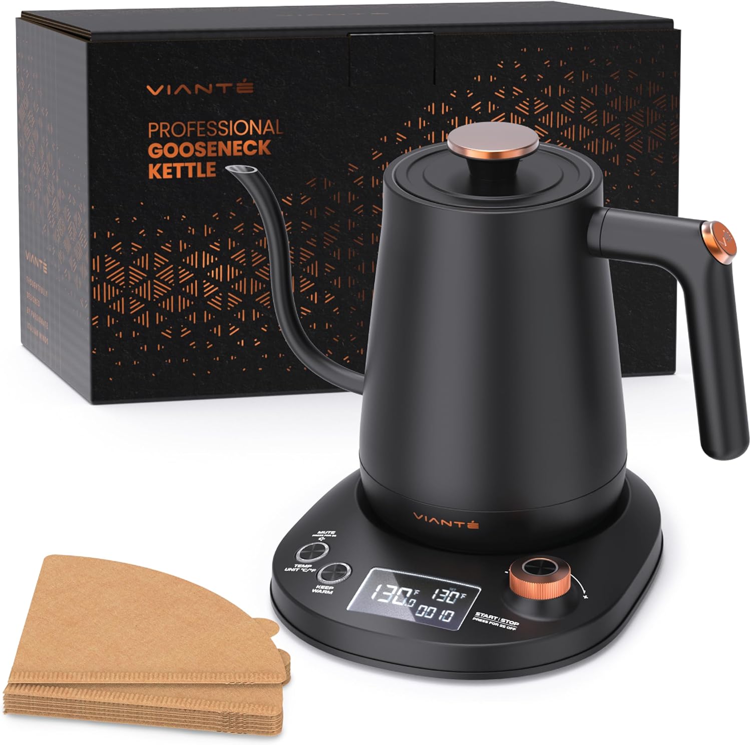 Vianté Electric Gooseneck Kettle with Precise Temperature Control. Pour Over Coffee & Tea Kettle. Boil-Dry Protection & Keep Warm Function. Stainless Steel, BPA-Free. Includes V60#2 Filters. 0.8LPL51-B0D325LNGR