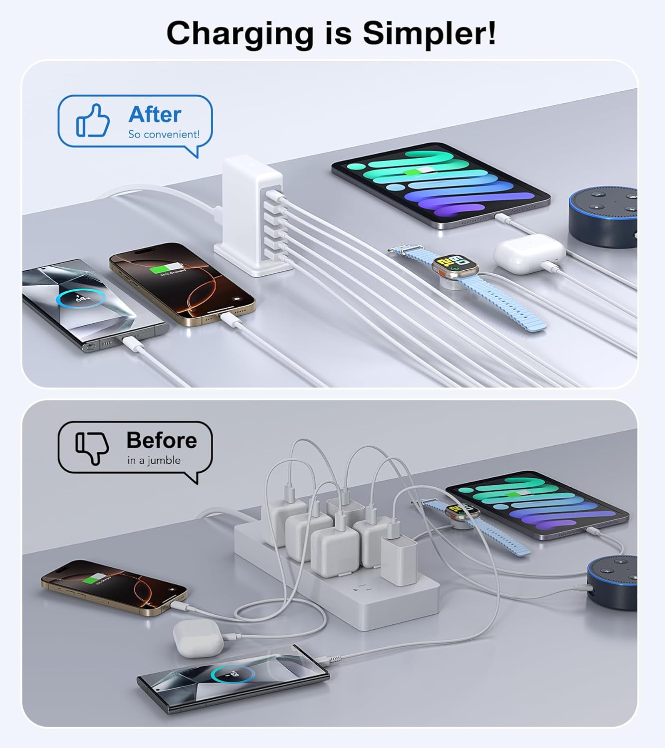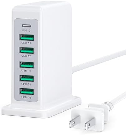 Voteen 45W 6 Port USB Charger Charging Block with 1 USB C 5 USB A Port, USB Power Strip Plug Charging Hub Multi Travel Chargers for iPhone iPad, Tablets, SmartphonesPL17-B0DKT6VQ86