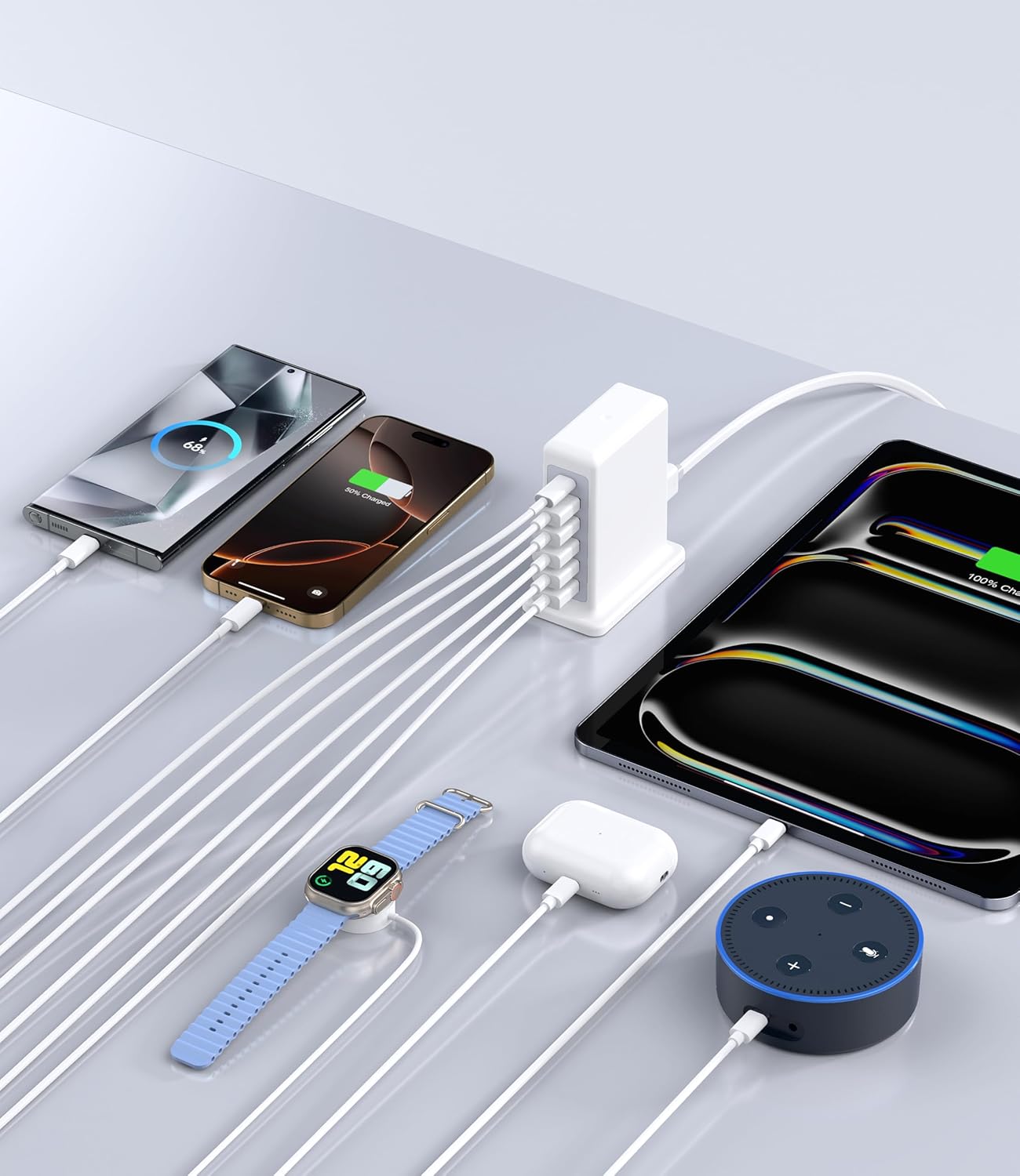 • Widely Compatible: Standard charging ports are compatible with all USB C and USB A small devices. Compatible with iPhone 15 14 13 12 11 series, ipad and Android phones. Not only can it charge mobile phones and tablets, but also watches, headphones, power banks, power banks, etc