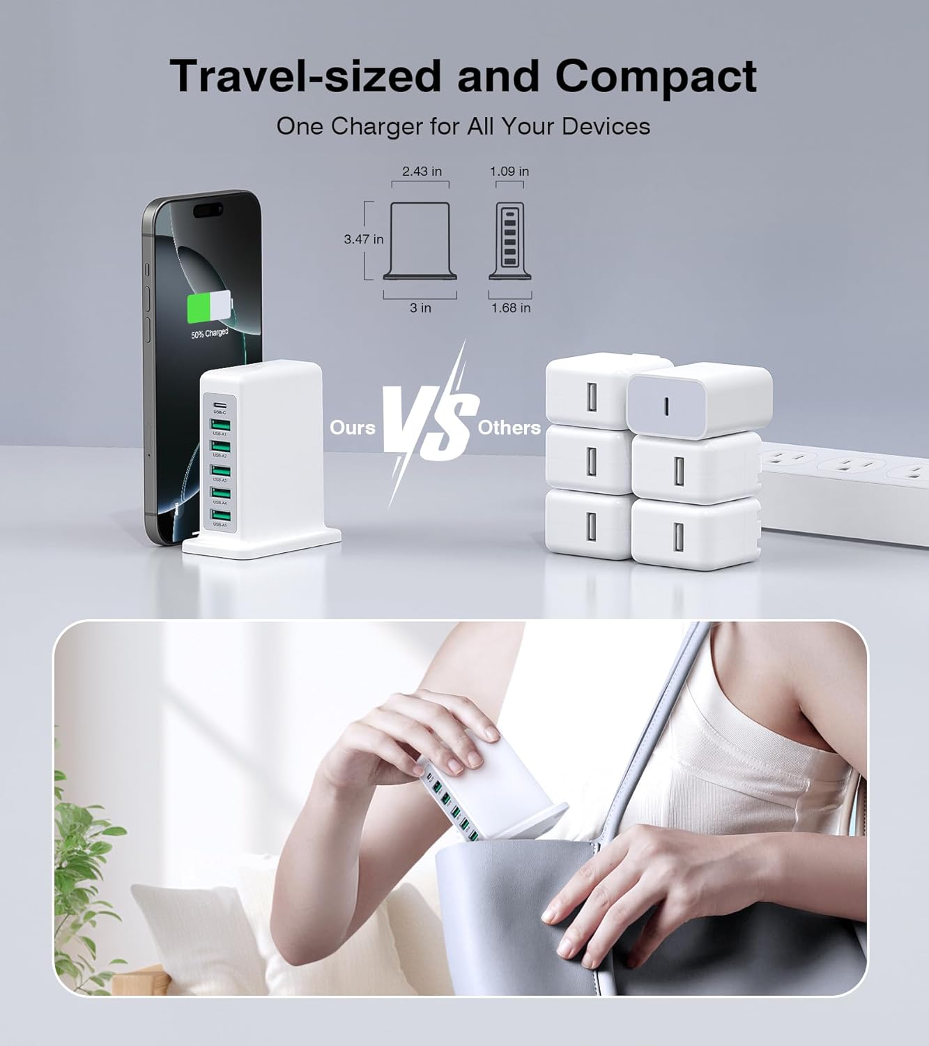 Voteen 45W 6 Port USB Charger Charging Block with 1 USB C 5 USB A Port, USB Power Strip Plug Charging Hub Multi Travel Chargers for iPhone iPad, Tablets, Smartphones
