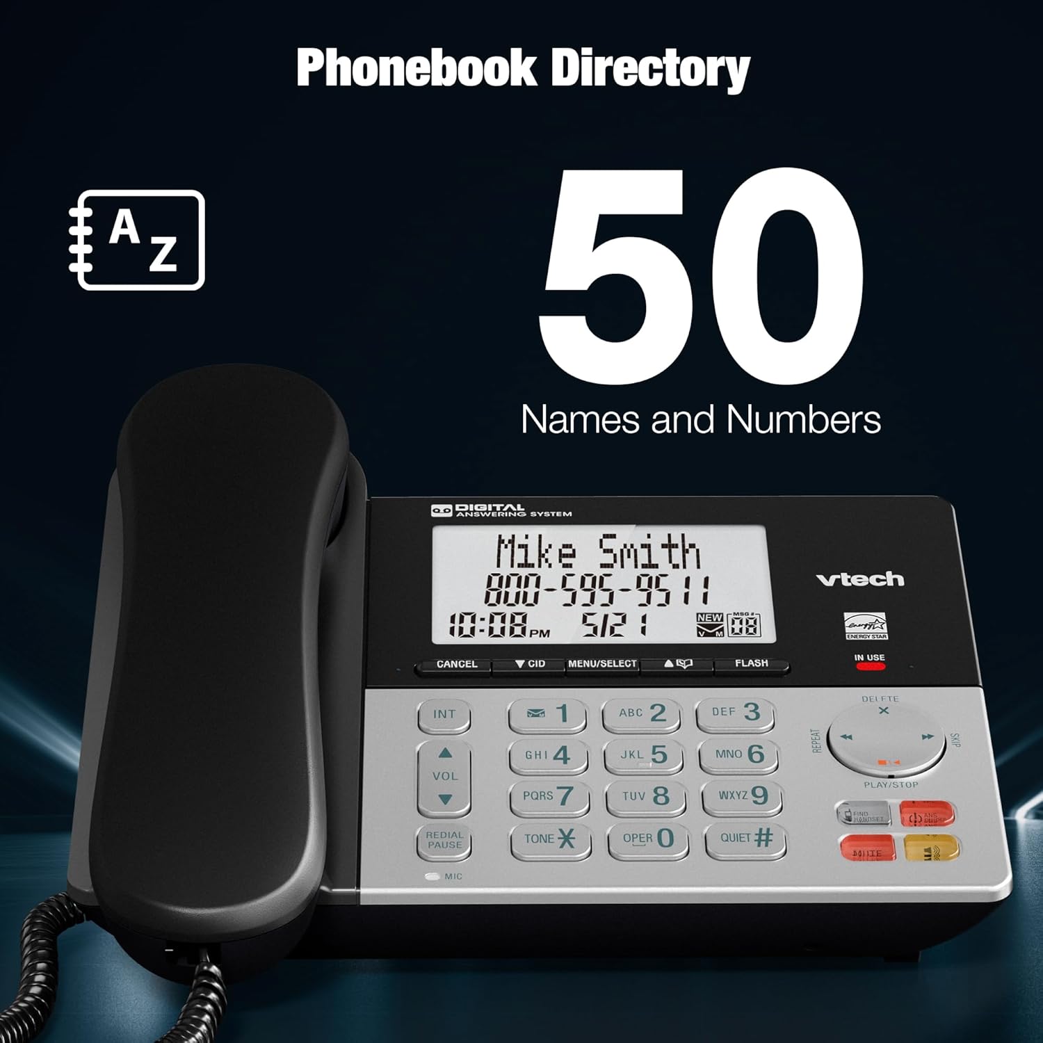 VTech DECT 6.0 1-Handset Corded/Cordless Phone for Home with Answering Machine, Call Blocking, Caller ID, Large Backlit Display, Duplex Speakerphone, Intercom, Landline Line-Power: VG208