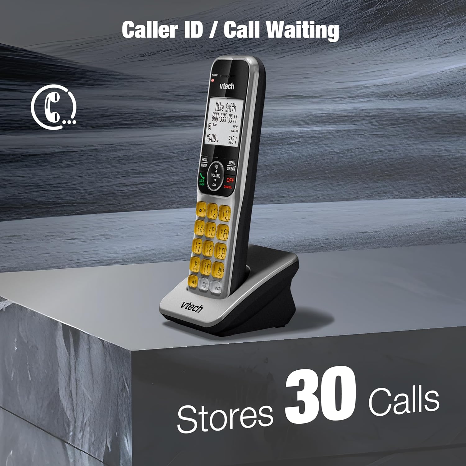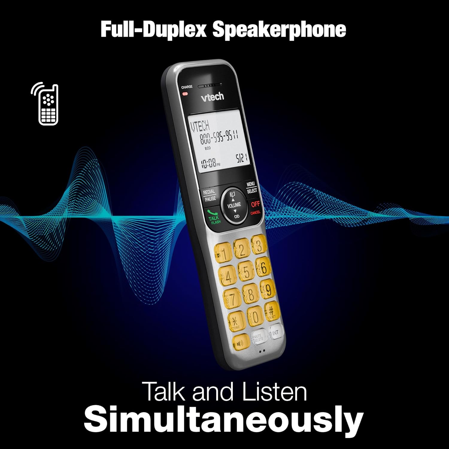Complete with both a corded and cordless handset, the VTech VG208 DECT 6.0 Expandable Cordless Answering System with Extra-Large Display makes staying in touch easier than ever. The corded handset means you won’t have to search for a missing ringing handset, while the cordless handset lets you take calls into another room. A large 3.5" backlit display on the base and built-in digital answering system make it easy to review missed calls. With up to 22 minutes of recording time, the answering system grabs calls when you can’t. The system also features a handset and base full-duplex handset speakerphone, which allows both ends to speak and be heard at the same time for conversations that are more true to life. Caller ID entries display on a large, backlit LCD screen so you can see who’s on the line even in the dark. Plus, the lighted display indicates how many new messages you have waiting. Easily block up to 150 names and numbers with the Call Block. Add accessory handsets—up to 5 total—with just one phone jack.