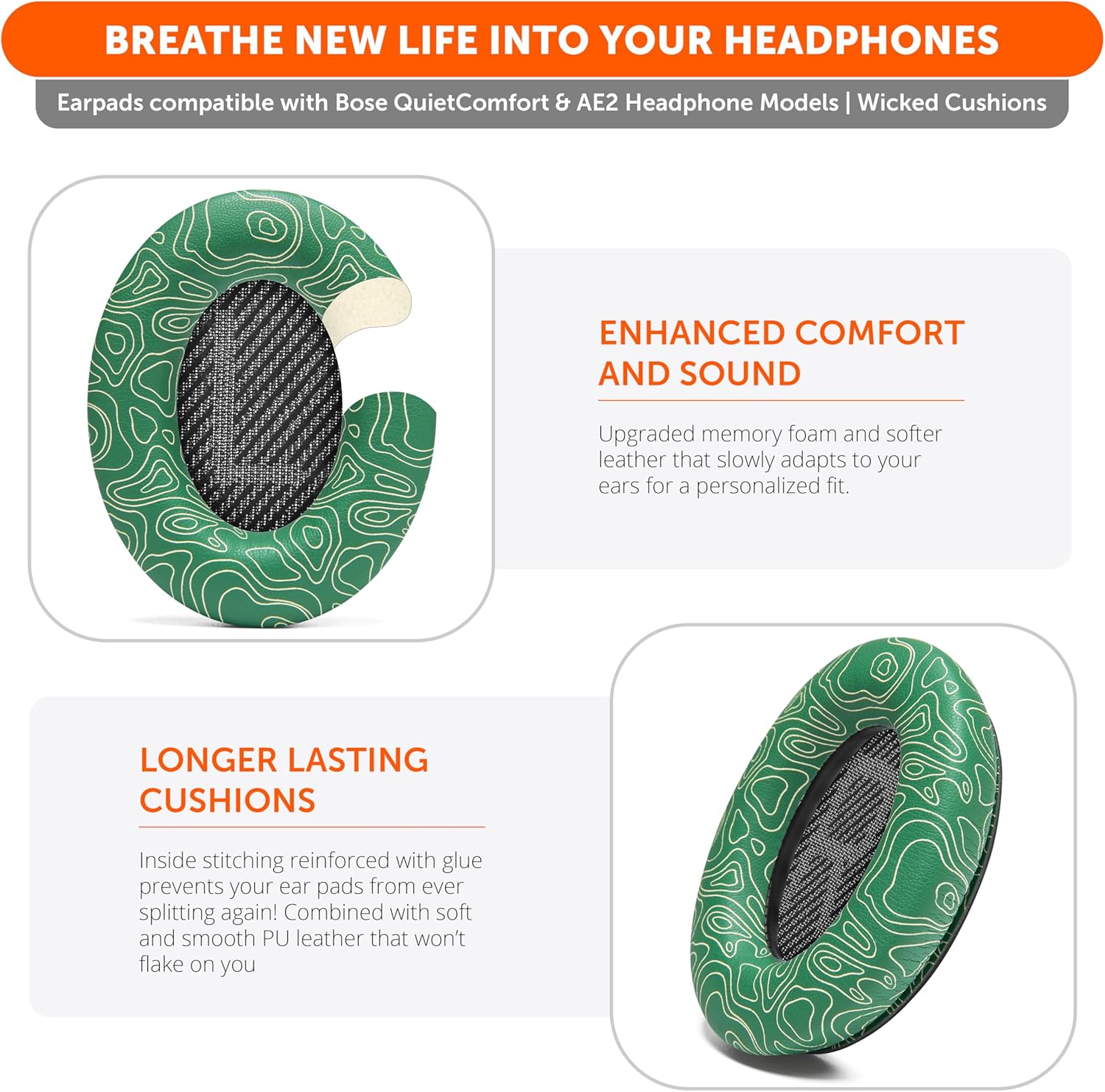 Fits Like A Glove: These ear pads, made by Wicked Cushions, fit the following models of Bose Headphones perfectly: QuietComfort 35 & 35ii / Quiet Comfort 2 / Qc25 / Qc15 / Ae2 / Ae2i / Ae2w / SoundTrue / SoundLink