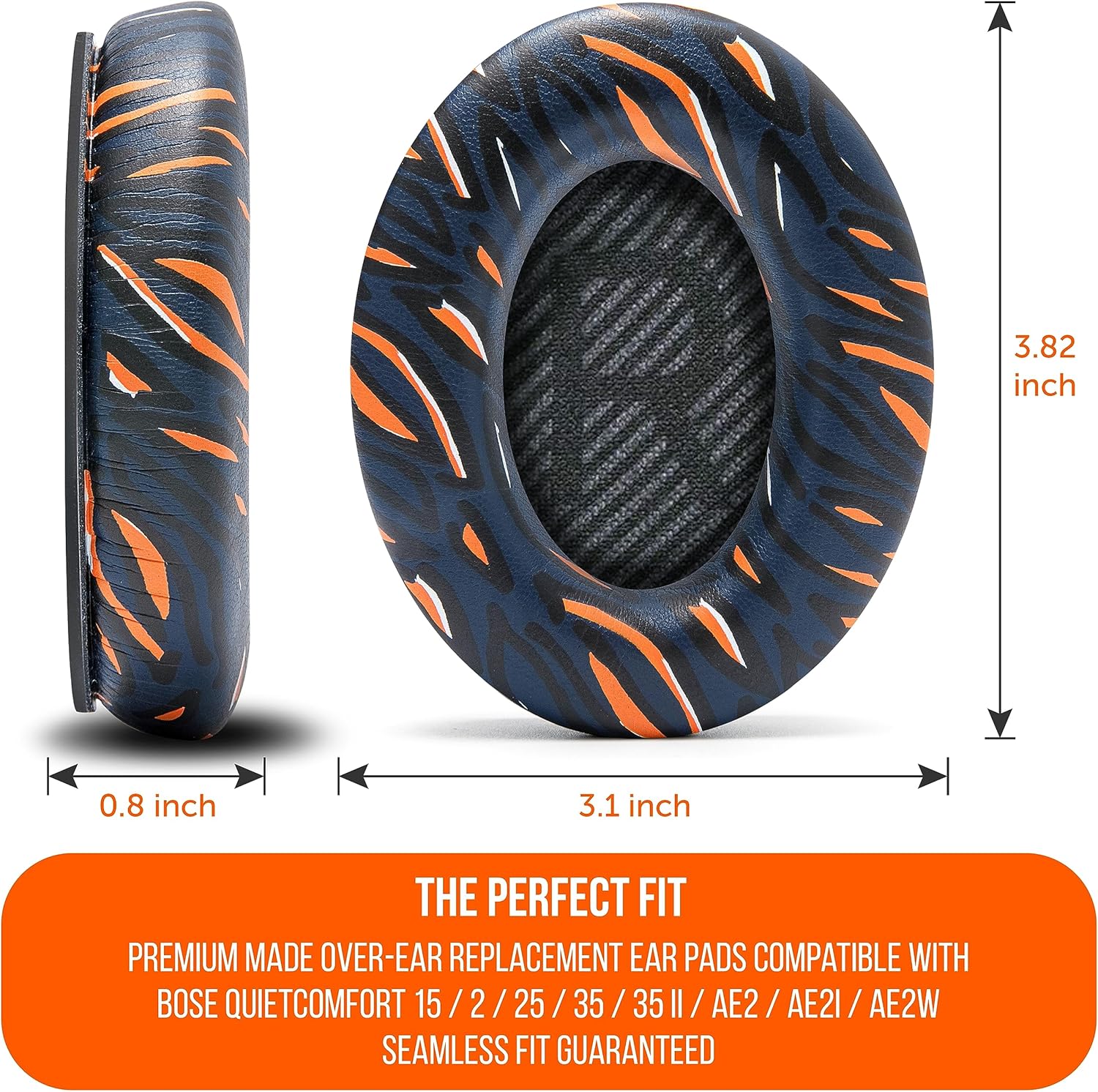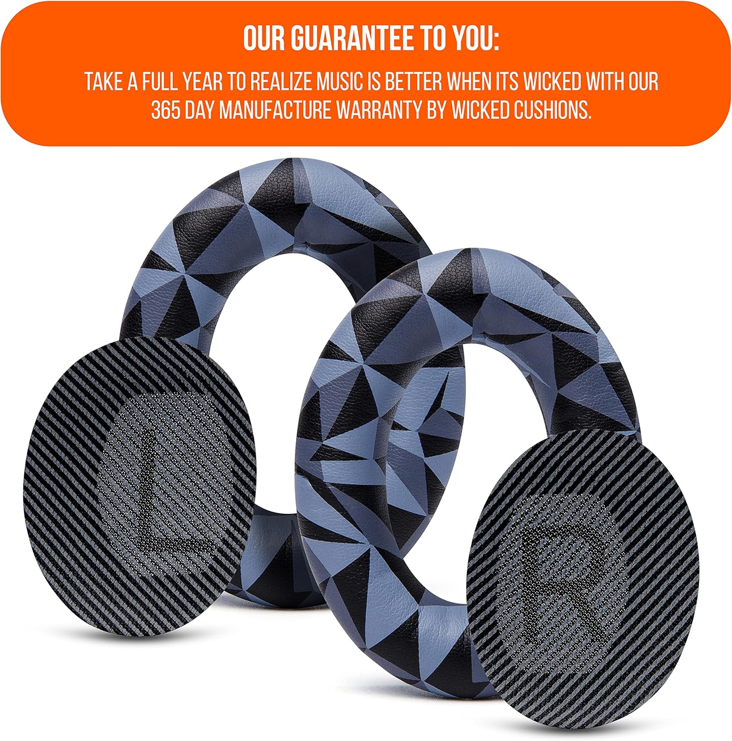 WC Wicked Cushions Upgraded Replacement Ear Pads for Bose QC35 & QC35ii (QuietComfort 35) Headphones & More - Softer Leather, Luxurious Memory Foam, Added Thickness, Extra Durability | Navy Tiger