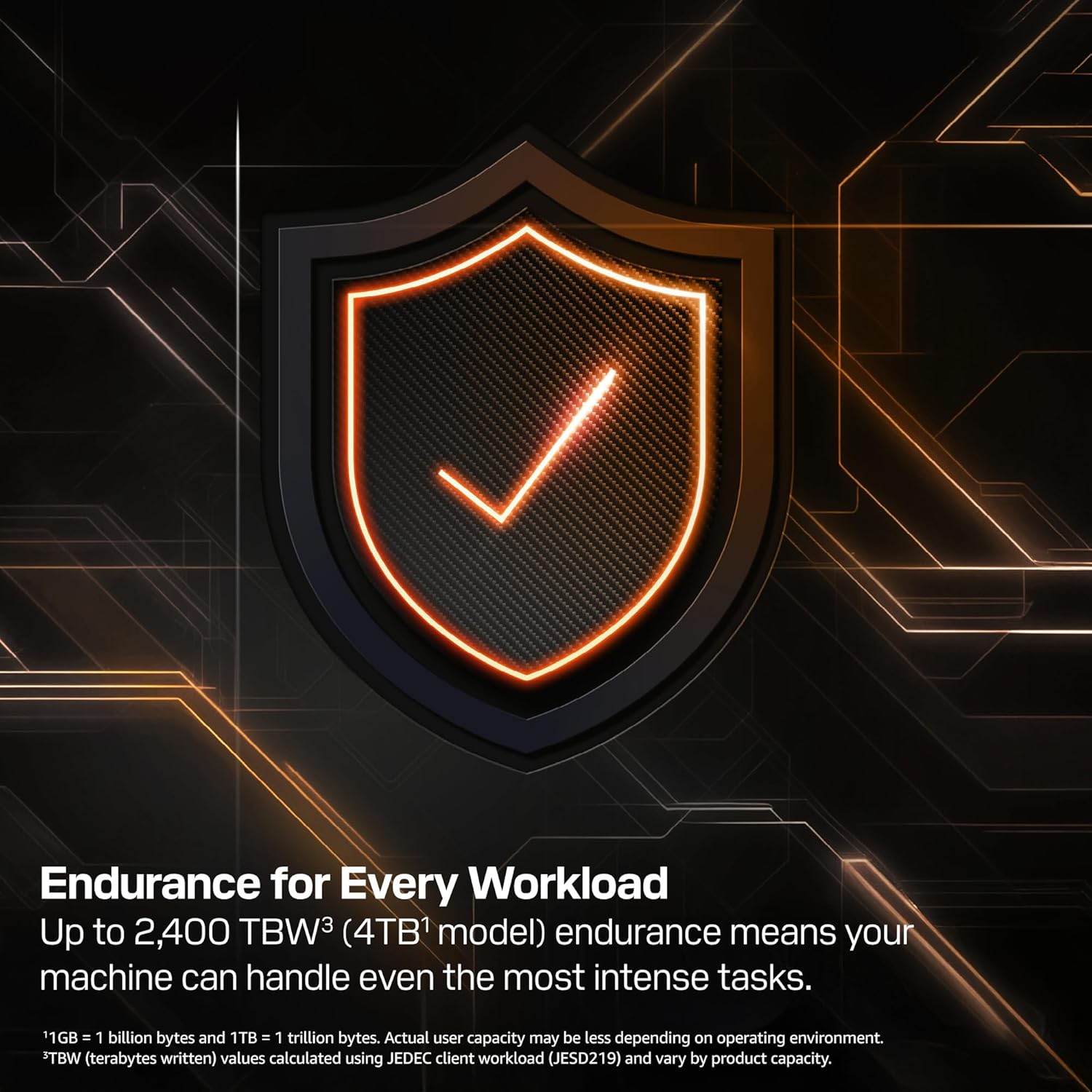- Up to 2,400 TBW(3) (4TB(1) model) endurance means your machine can handle even the most intense tasks.