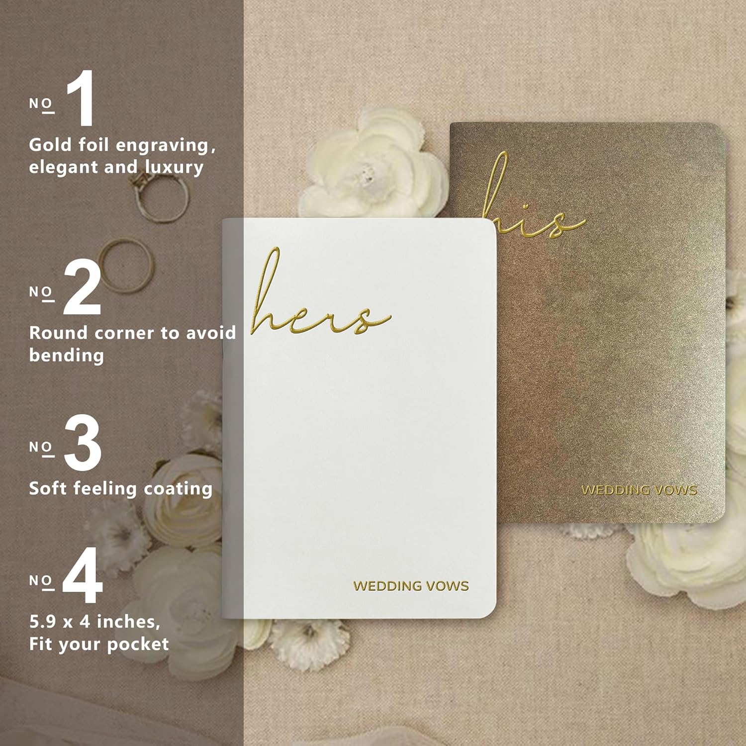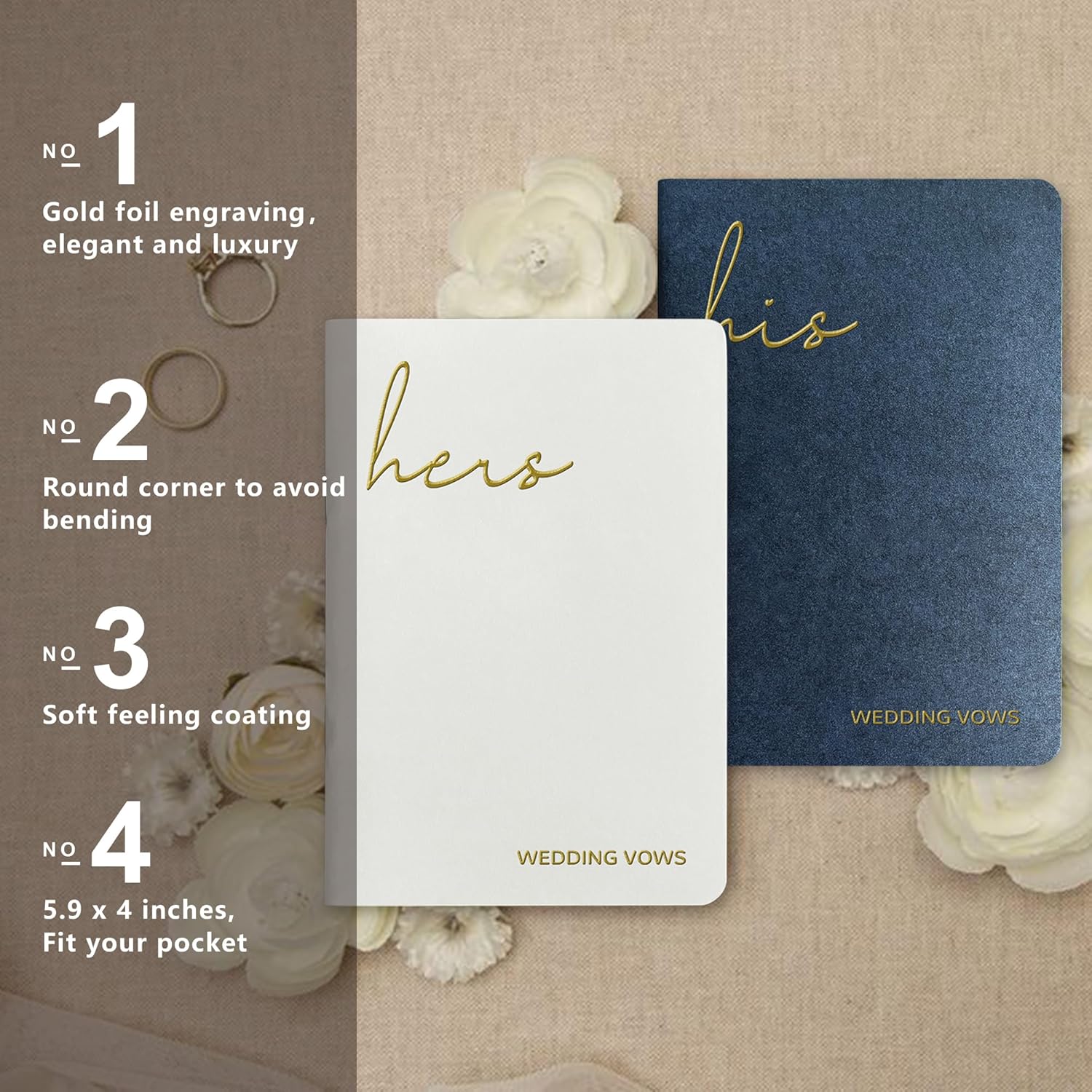 • 【Premium Quality Vow Books】The vow books his and hers has a SOFT-TOUCH cover, GOLD-FOIL engraving and 14 lined pages for the groom and bride to write their vows and thoughts about their love. High quality paper make the vow books thick and sturdy