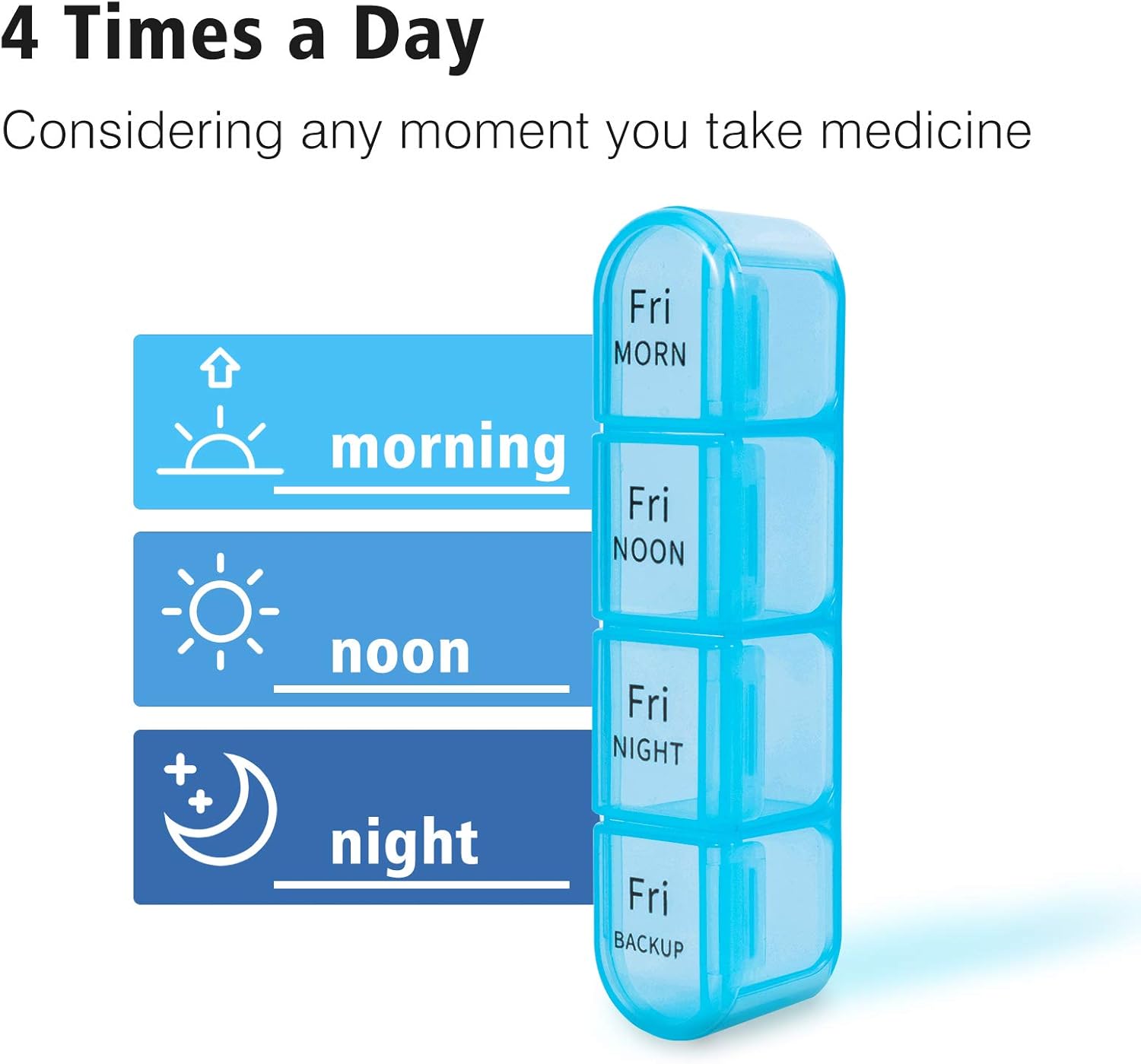 Pill Box 4 Times a Day - Including 3 times a day plus one backup pill box, considering any moment you take medicine. 7 day pill organizer makes organizing your one week pills a breeze