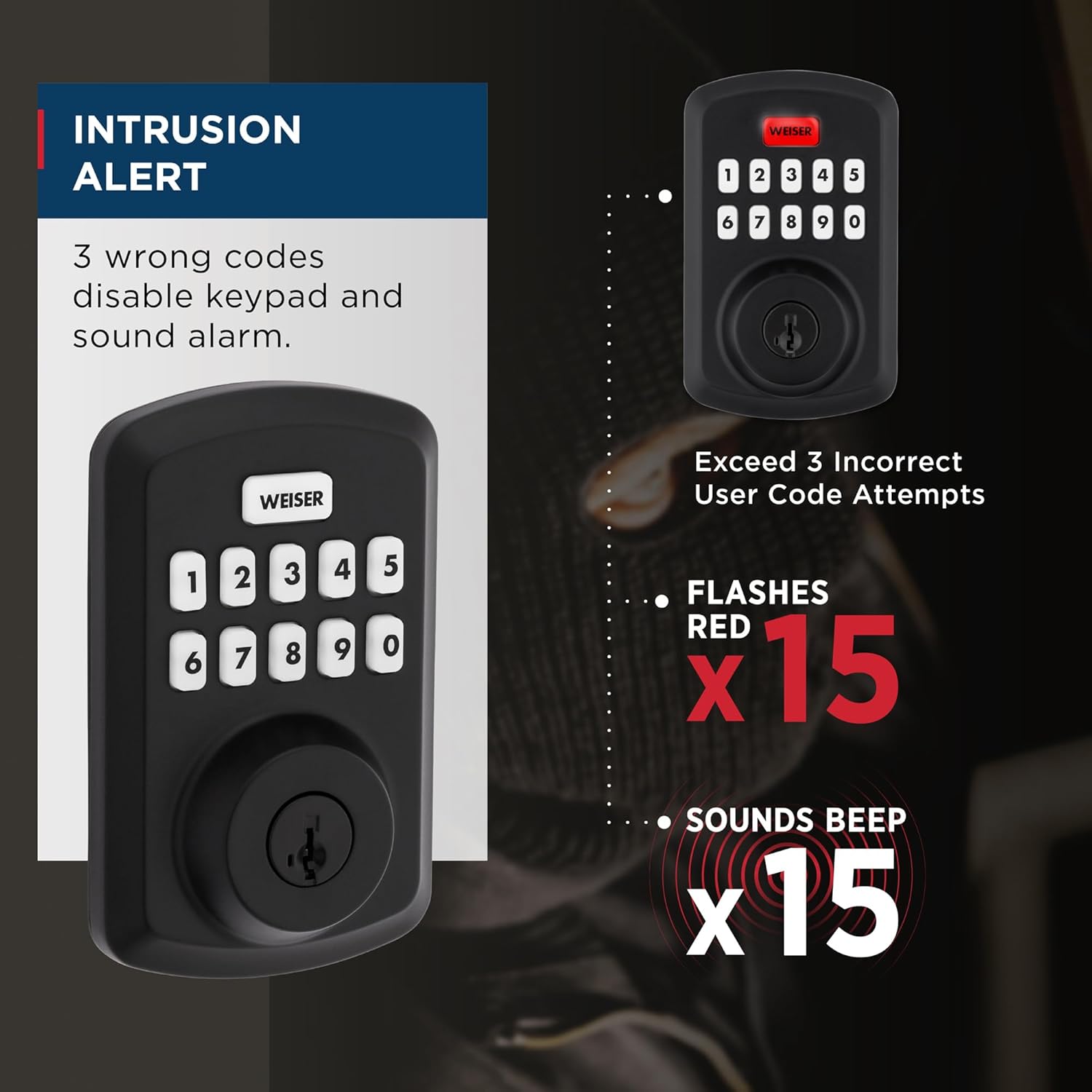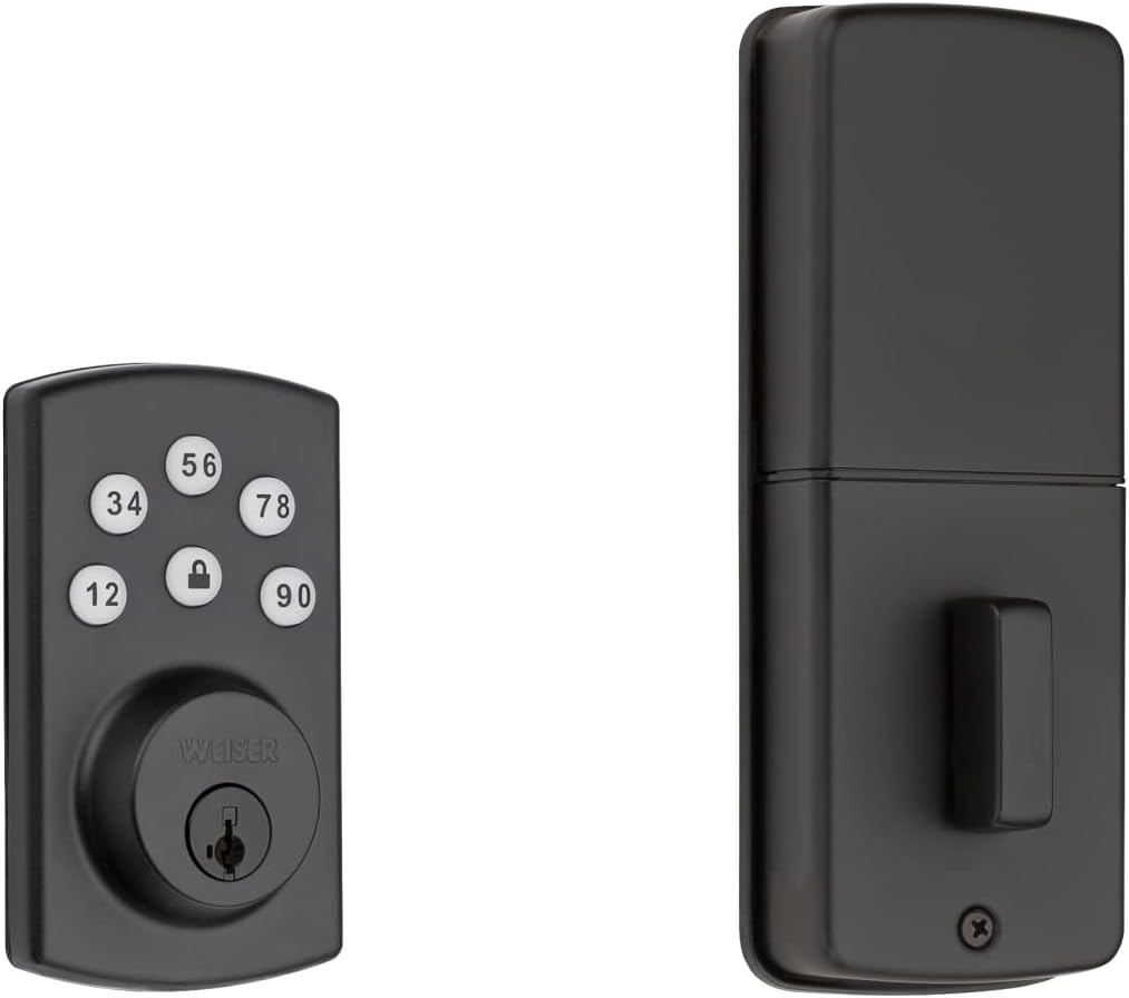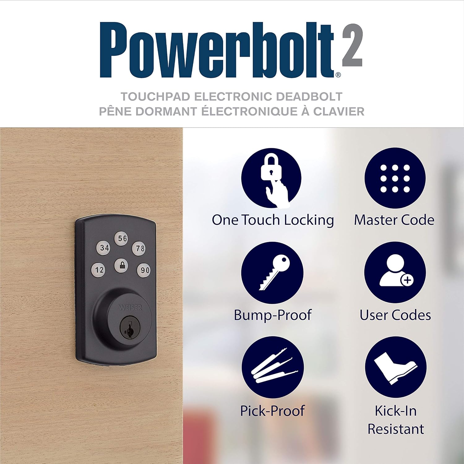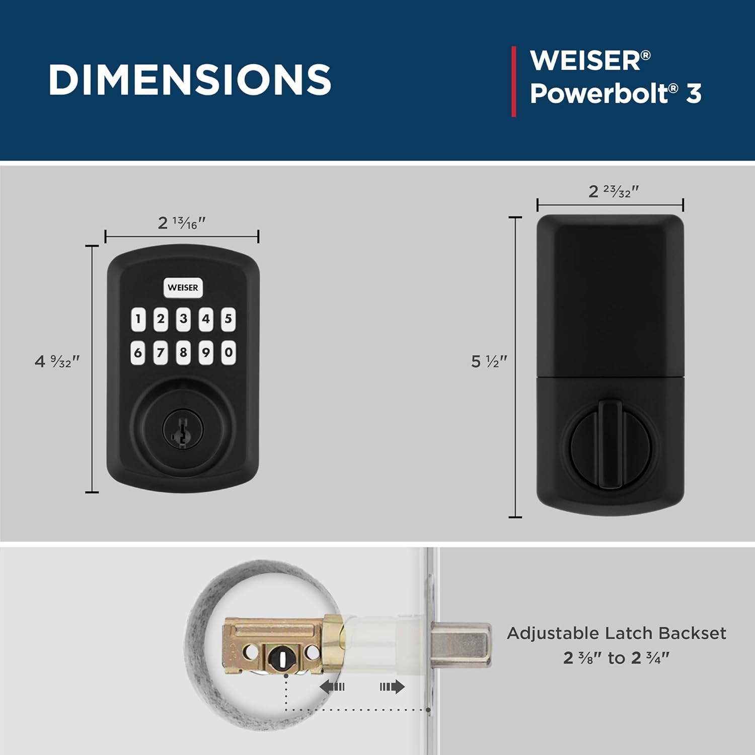 Weiser Powerbolt 3 Matte Black Keyless Entry Door Lock/Deadbolt Lock, 10-Button Keypad Door Lock with Auto Lock and 12-Month Battery Life, Electronic Door Locks for Front Door, Home Décor