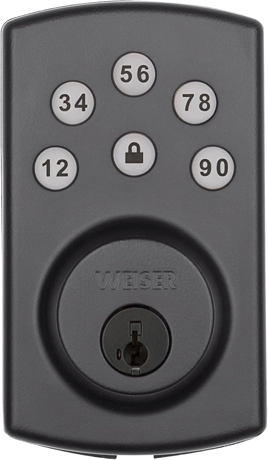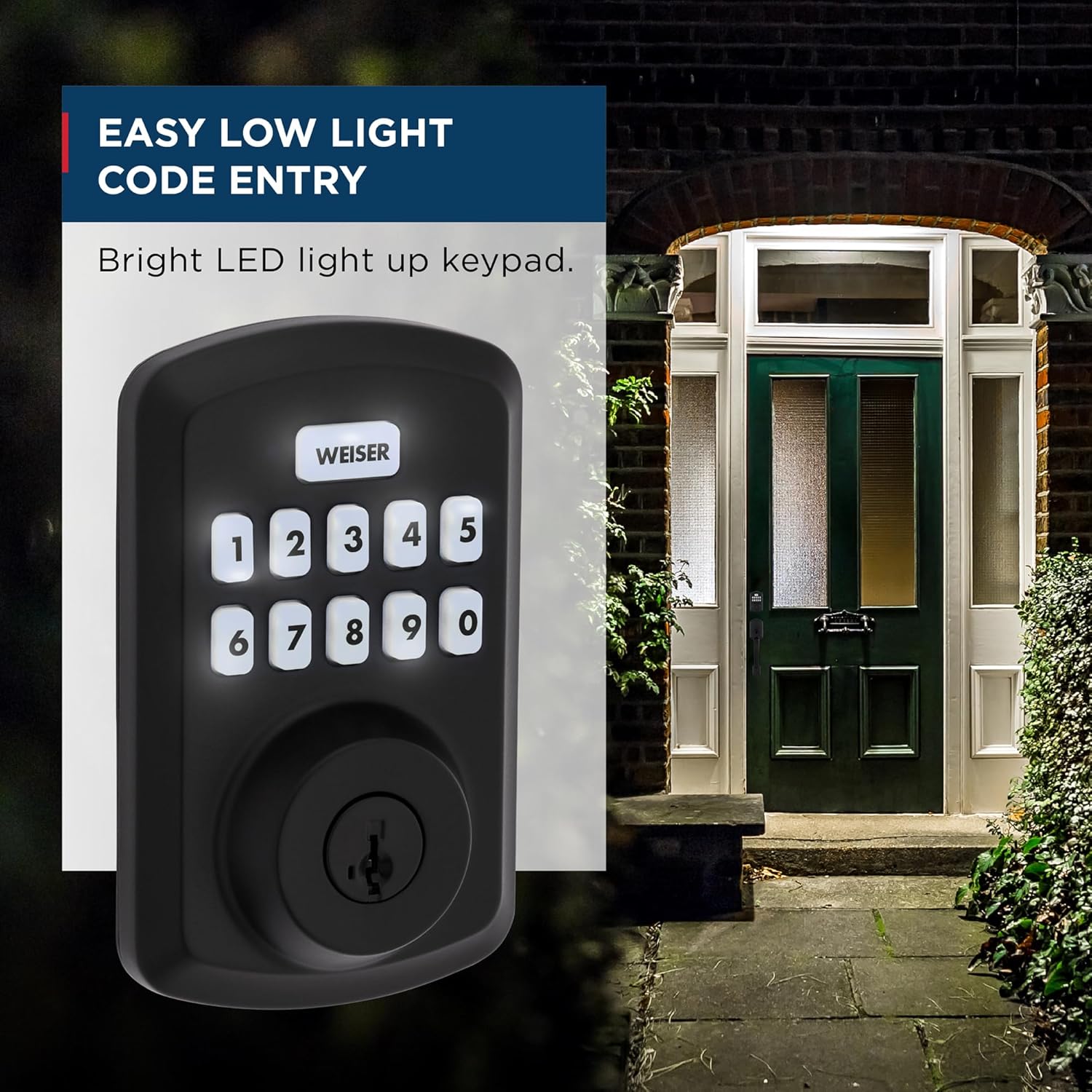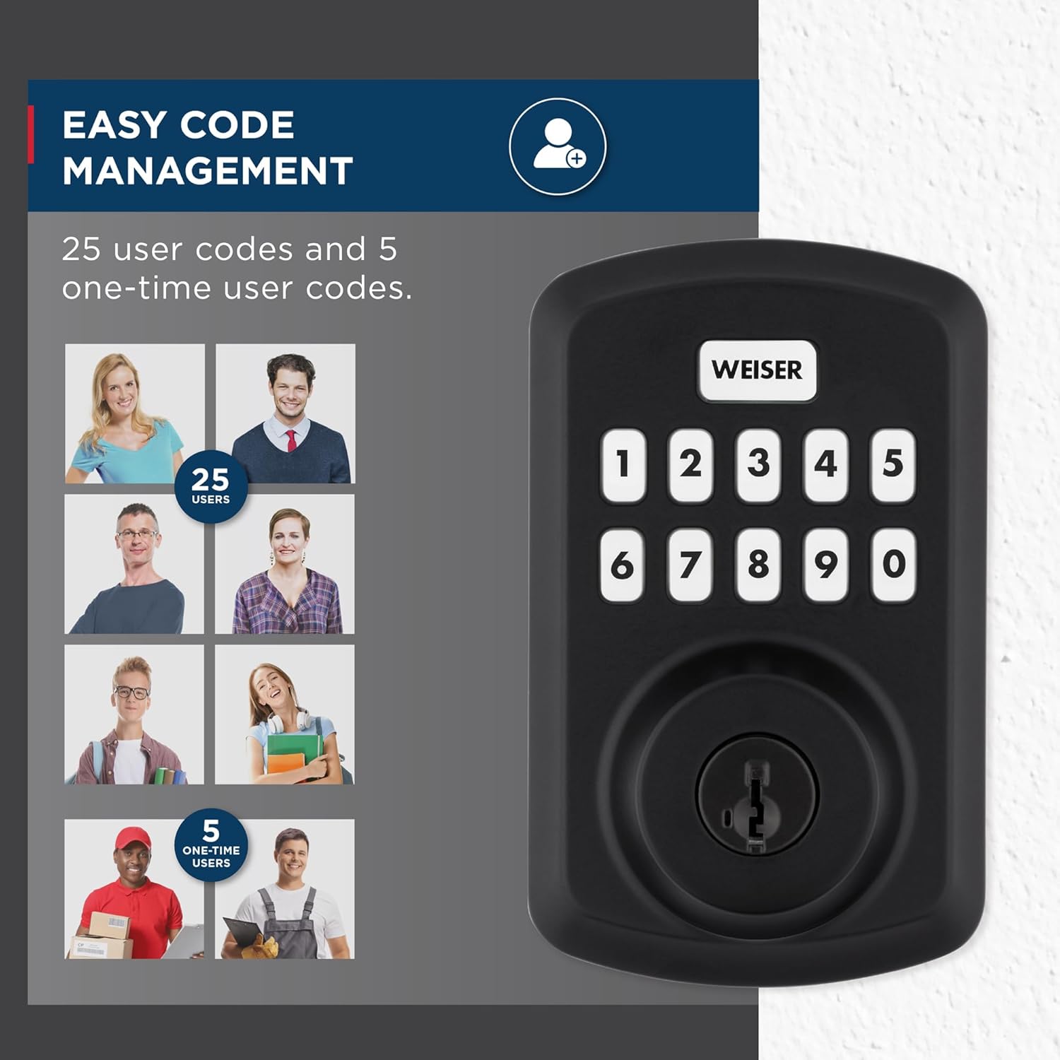 Weiser Powerbolt 3 Matte Black Keyless Entry Door Lock/Deadbolt Lock, 10-Button Keypad Door Lock with Auto Lock and 12-Month Battery Life, Electronic Door Locks for Front Door, Home Décor
