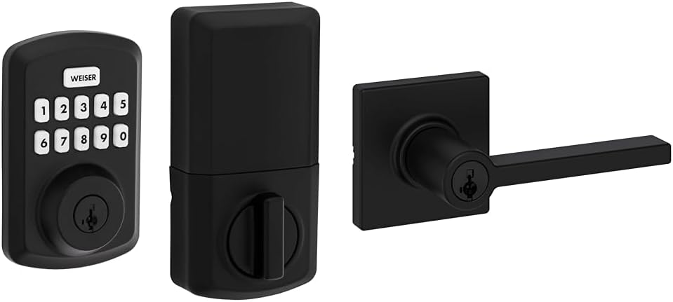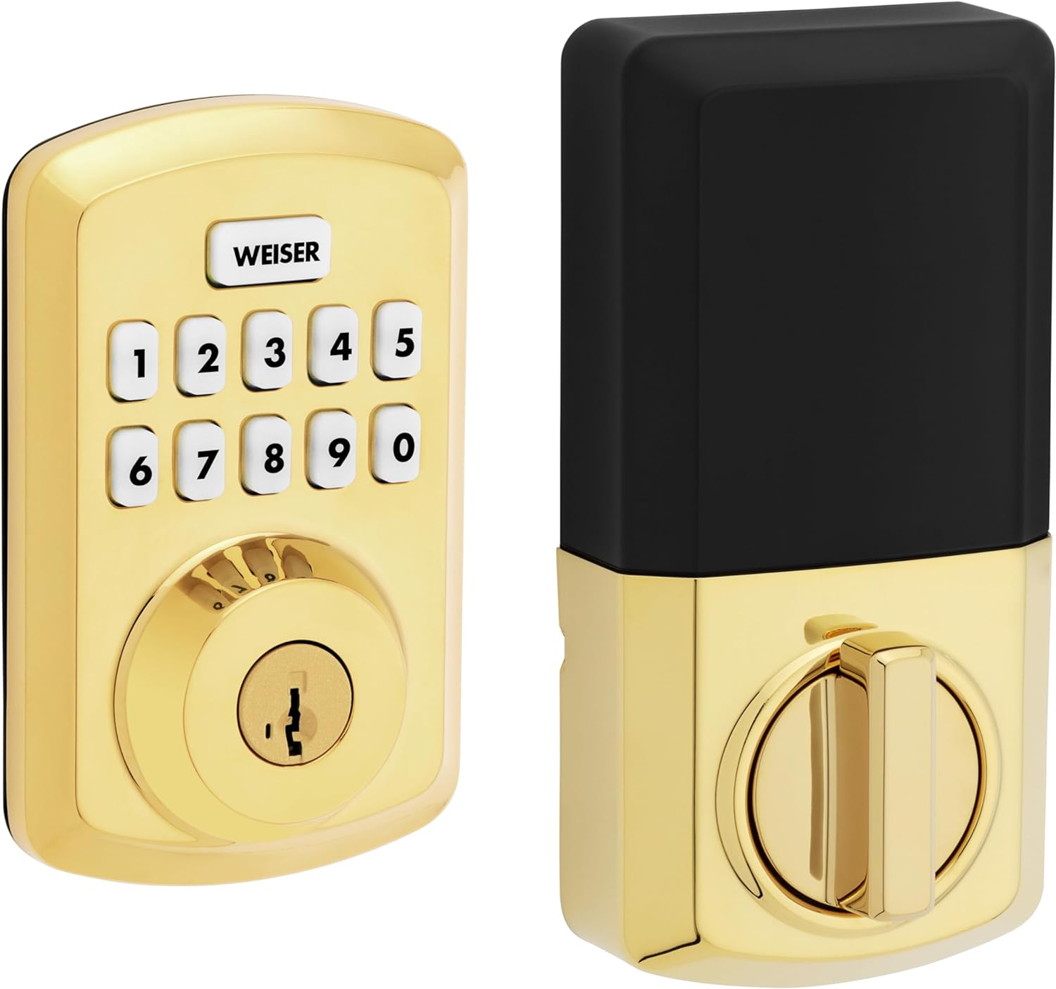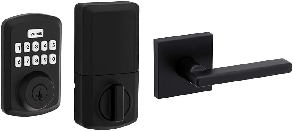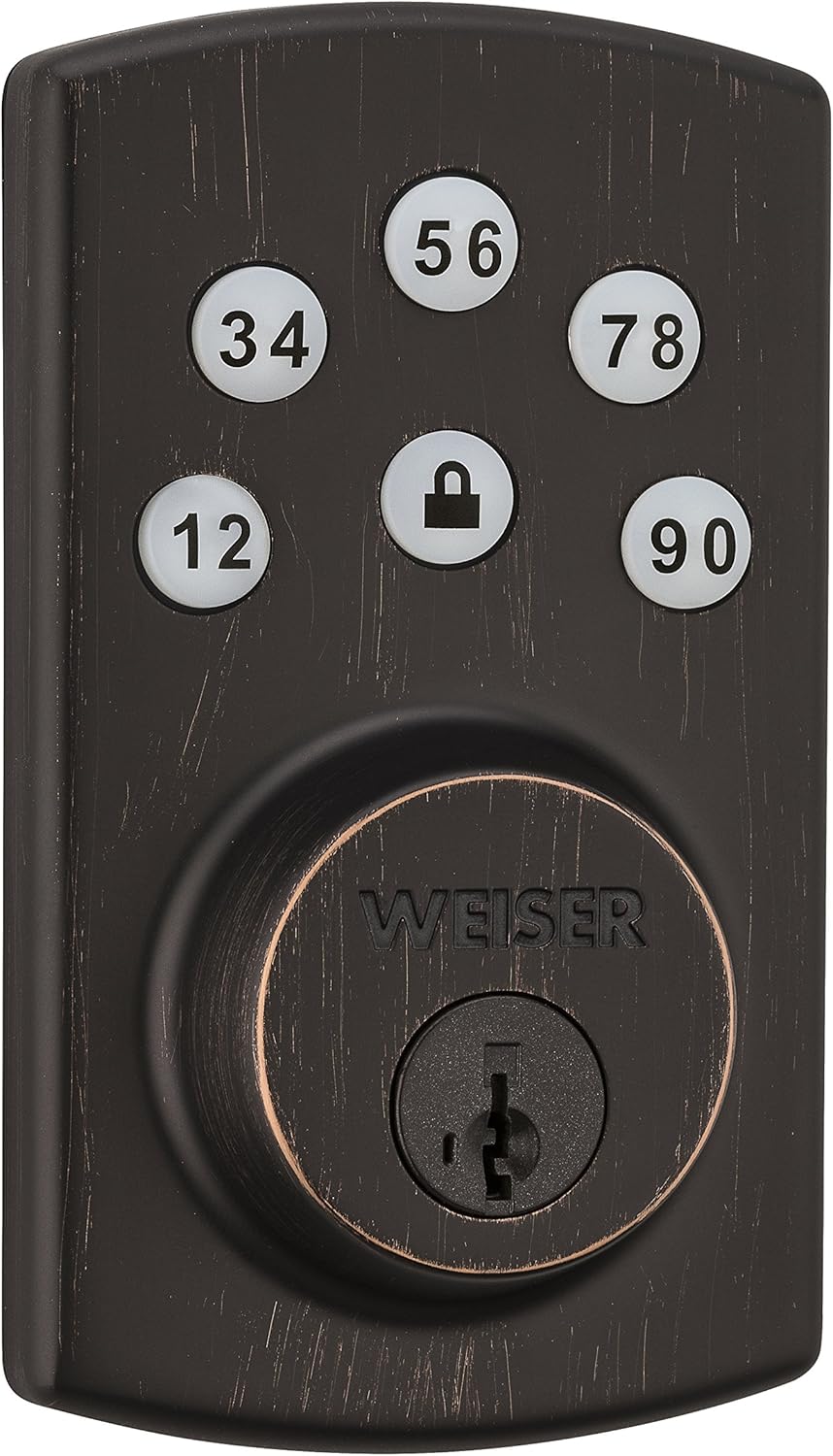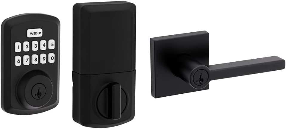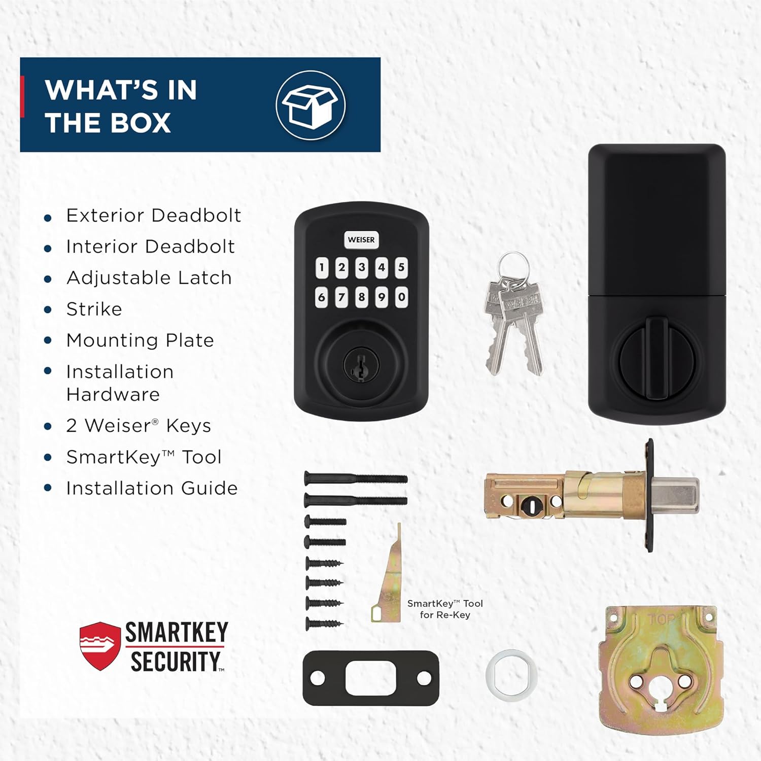 Weiser Powerbolt 3 Matte Black Keyless Entry Door Lock/Deadbolt Lock, 10-Button Keypad Door Lock with Auto Lock and 12-Month Battery Life, Electronic Door Locks for Front Door, Home Décor