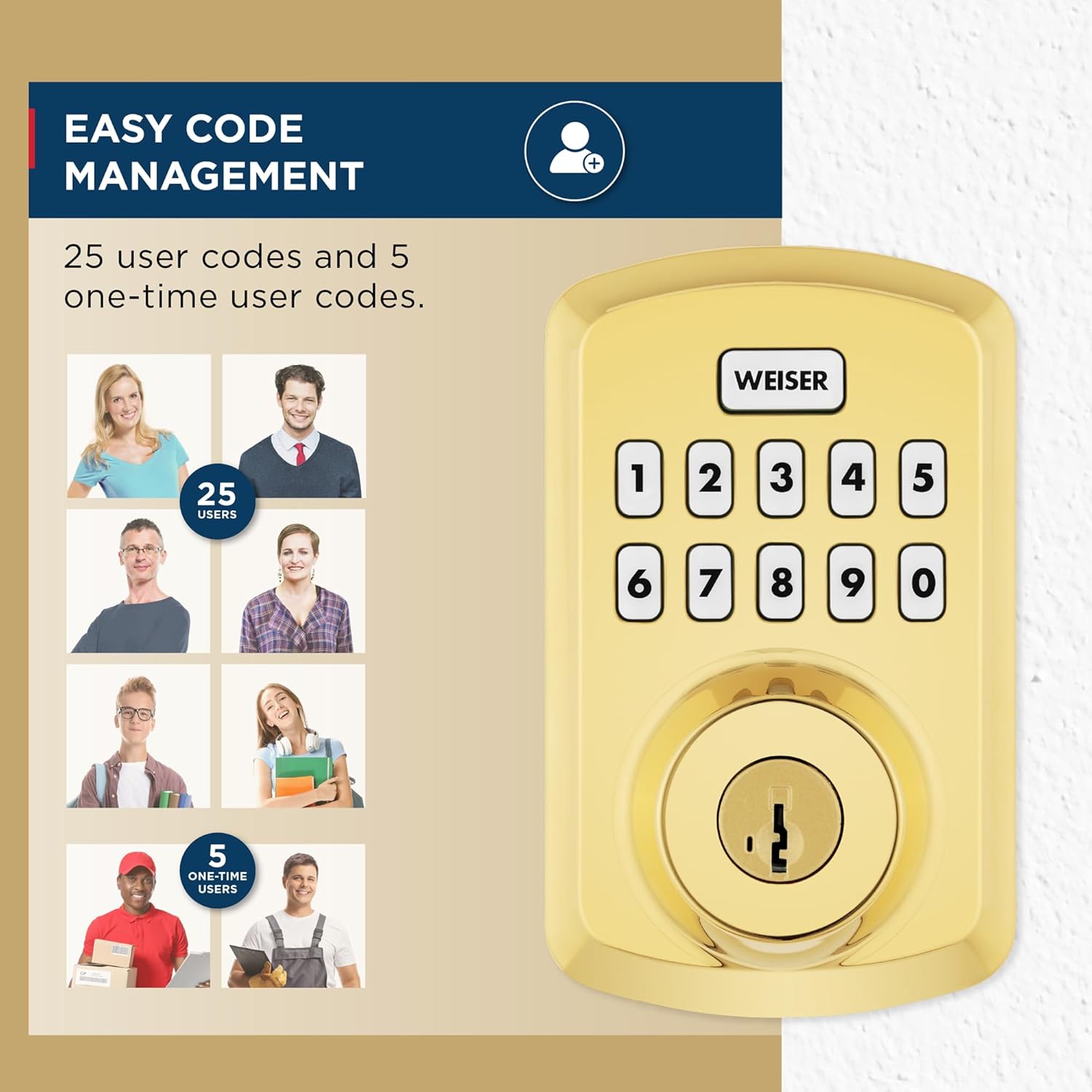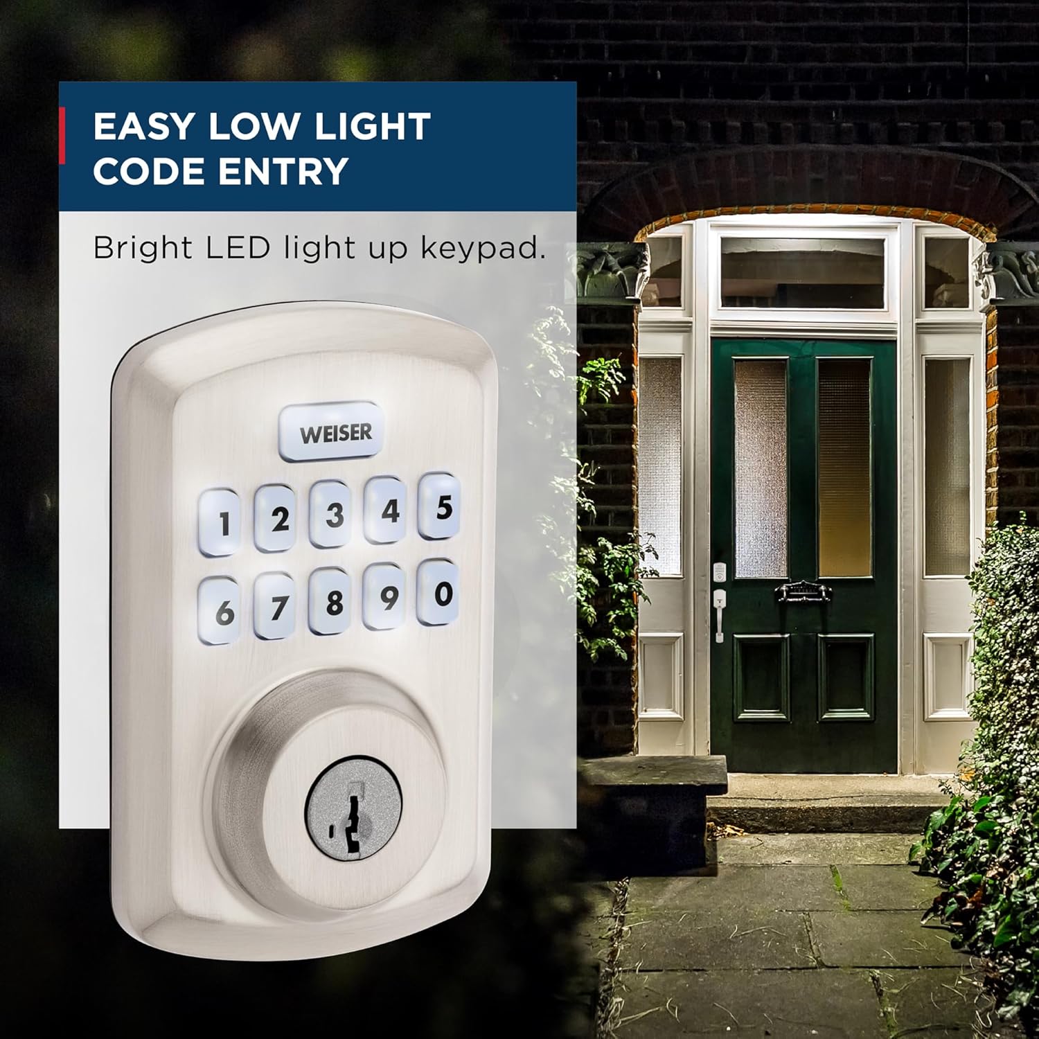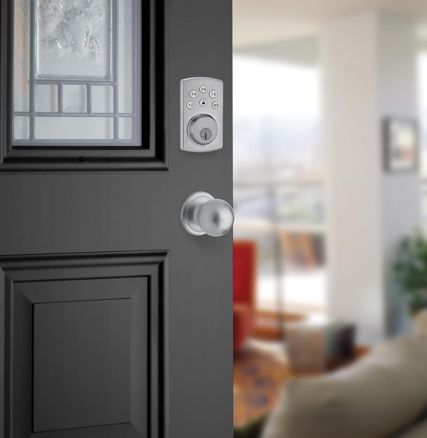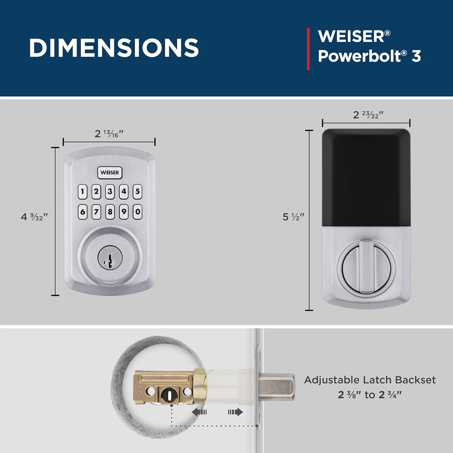 The Weiser Powerbolt 3 Electronic Door Lock, available in a transitional design, is an easy and attainable way to upgrade to an electronic door lock. It offers convenient keyless entry that makes coming and going secure and simple. Customize up to 25 user codes and enjoy easy code access with the 1-button light-up keypad. Additional features include Auto Lock and Vacation Mode, which provide security and peace of mind. All you need is a screwdriver to install it.
