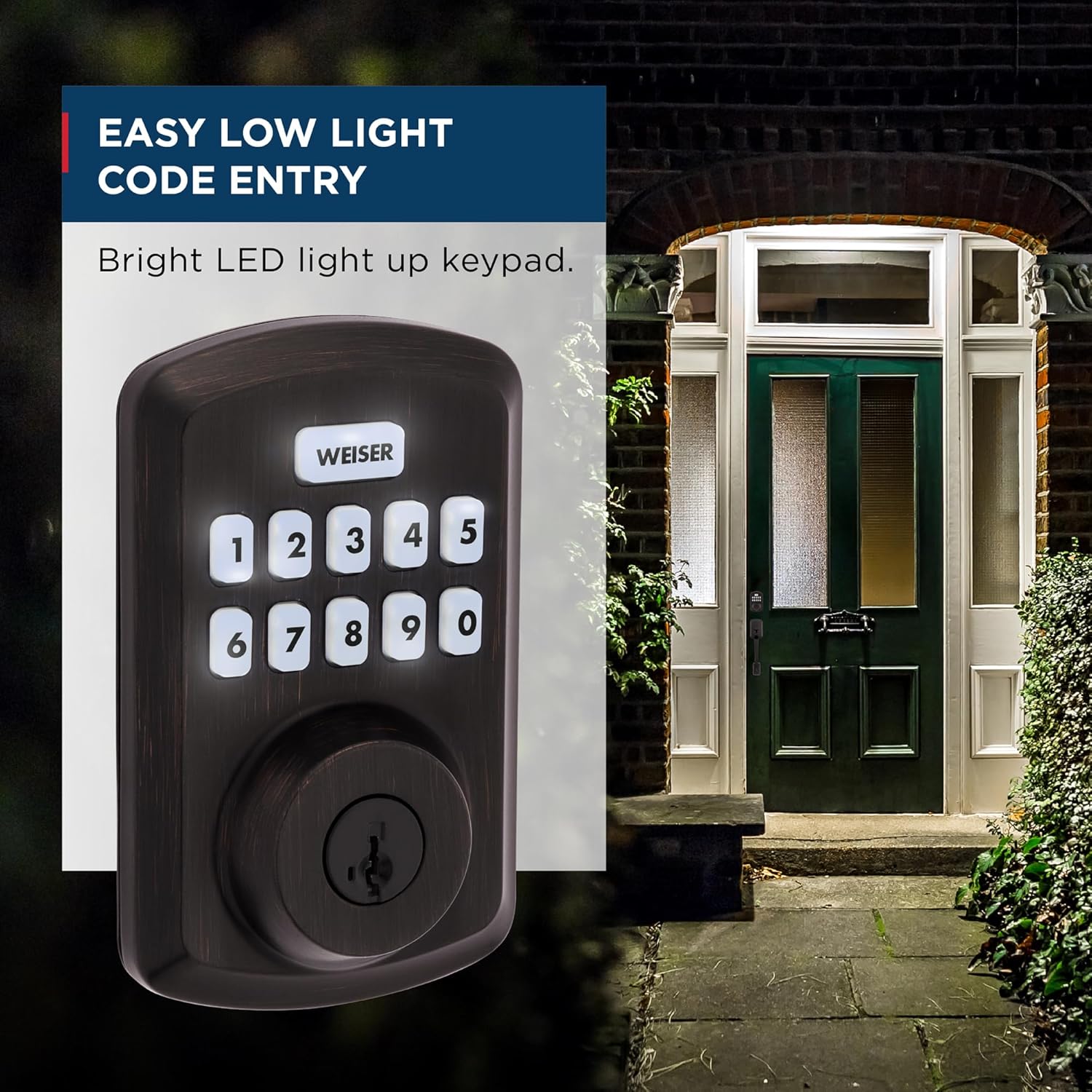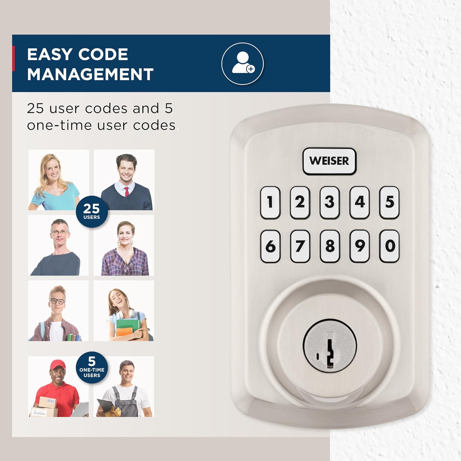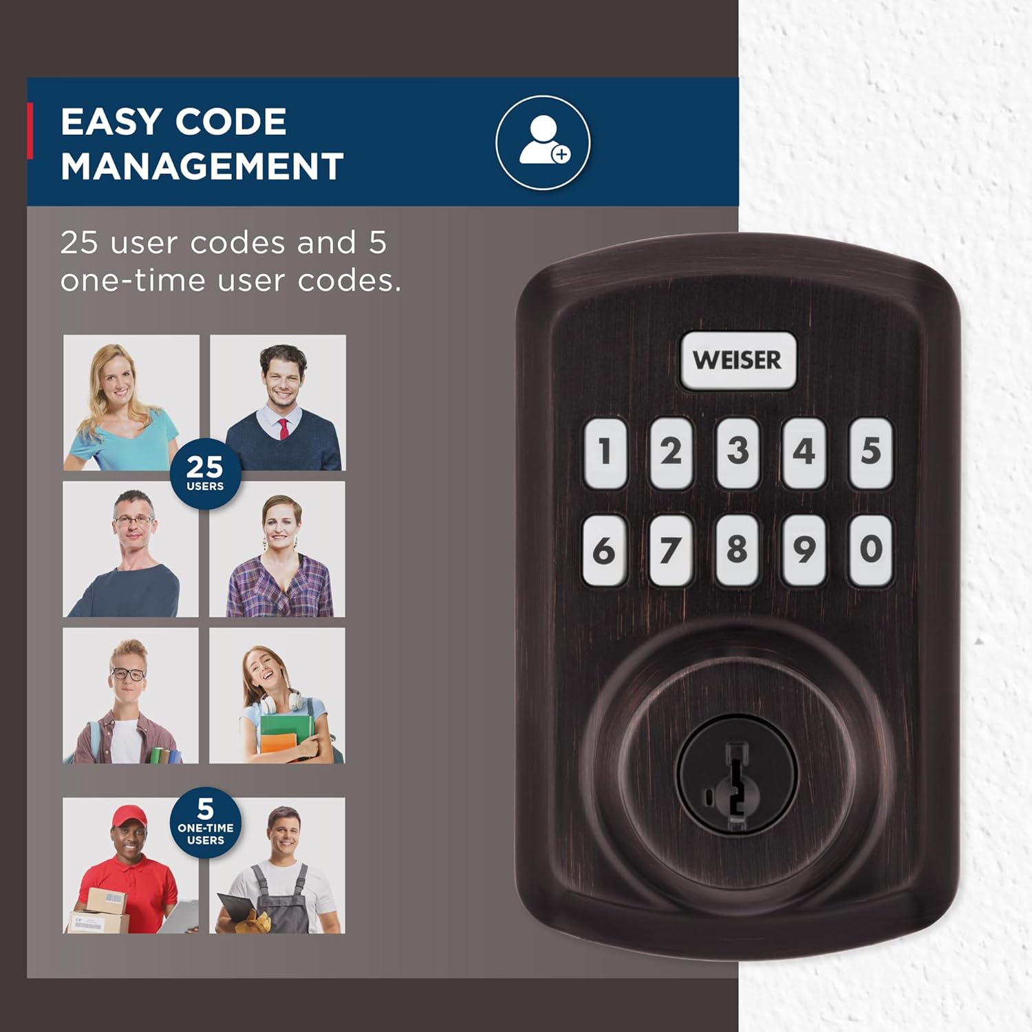 The Weiser Powerbolt 3 Electronic Door Lock, available in a transitional design, is an easy and attainable way to upgrade to an electronic door lock. It offers convenient keyless entry that makes coming and going secure and simple. Customize up to 25 user codes and enjoy easy code access with the 1-button light-up keypad. Additional features include Auto Lock and Vacation Mode, which provide security and peace of mind. All you need is a screwdriver to install it.