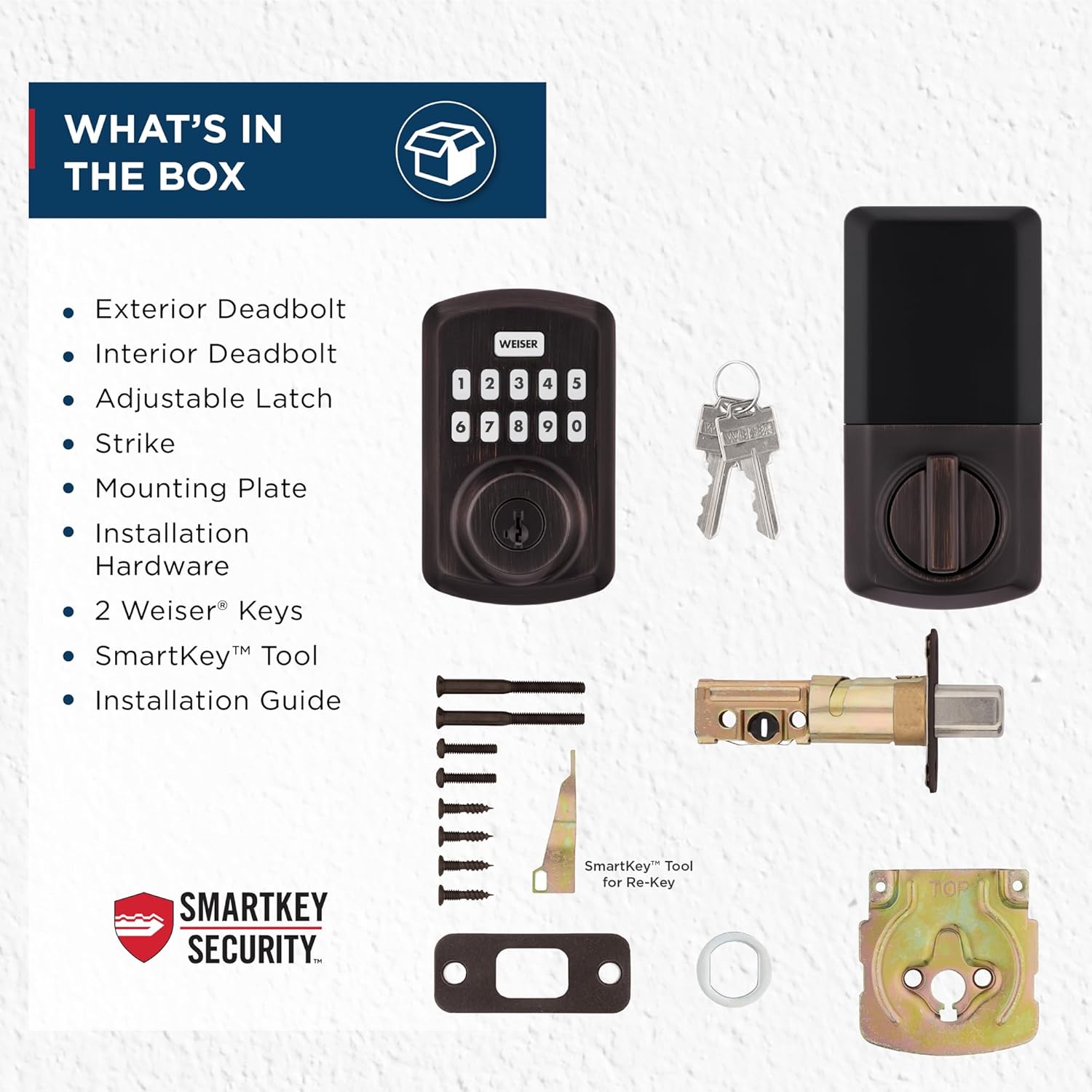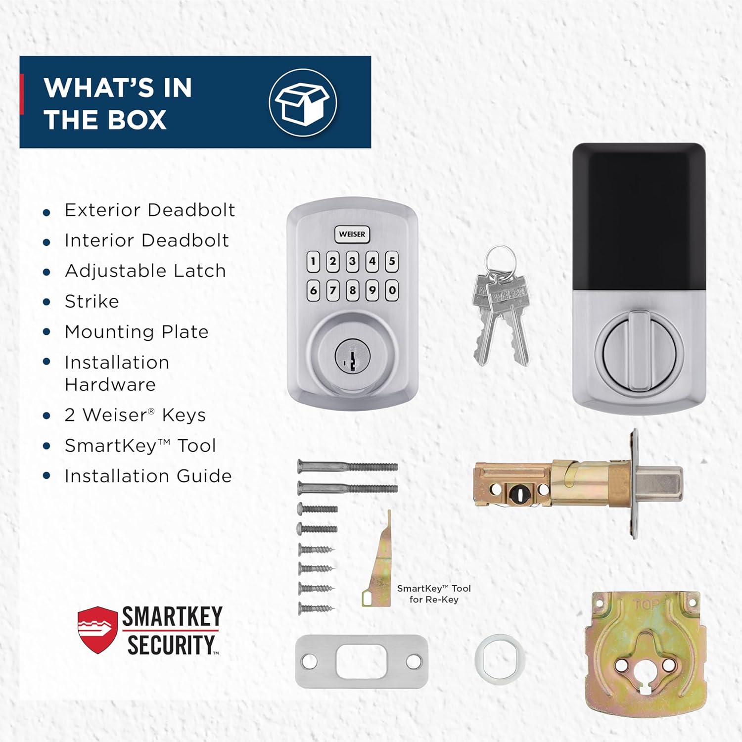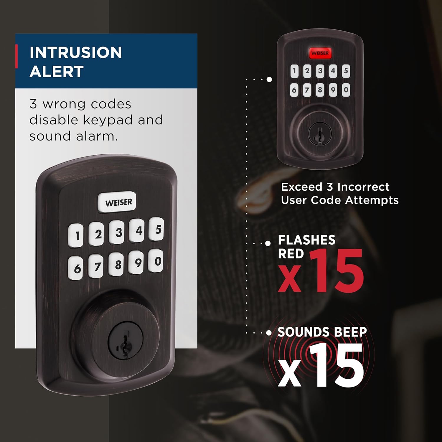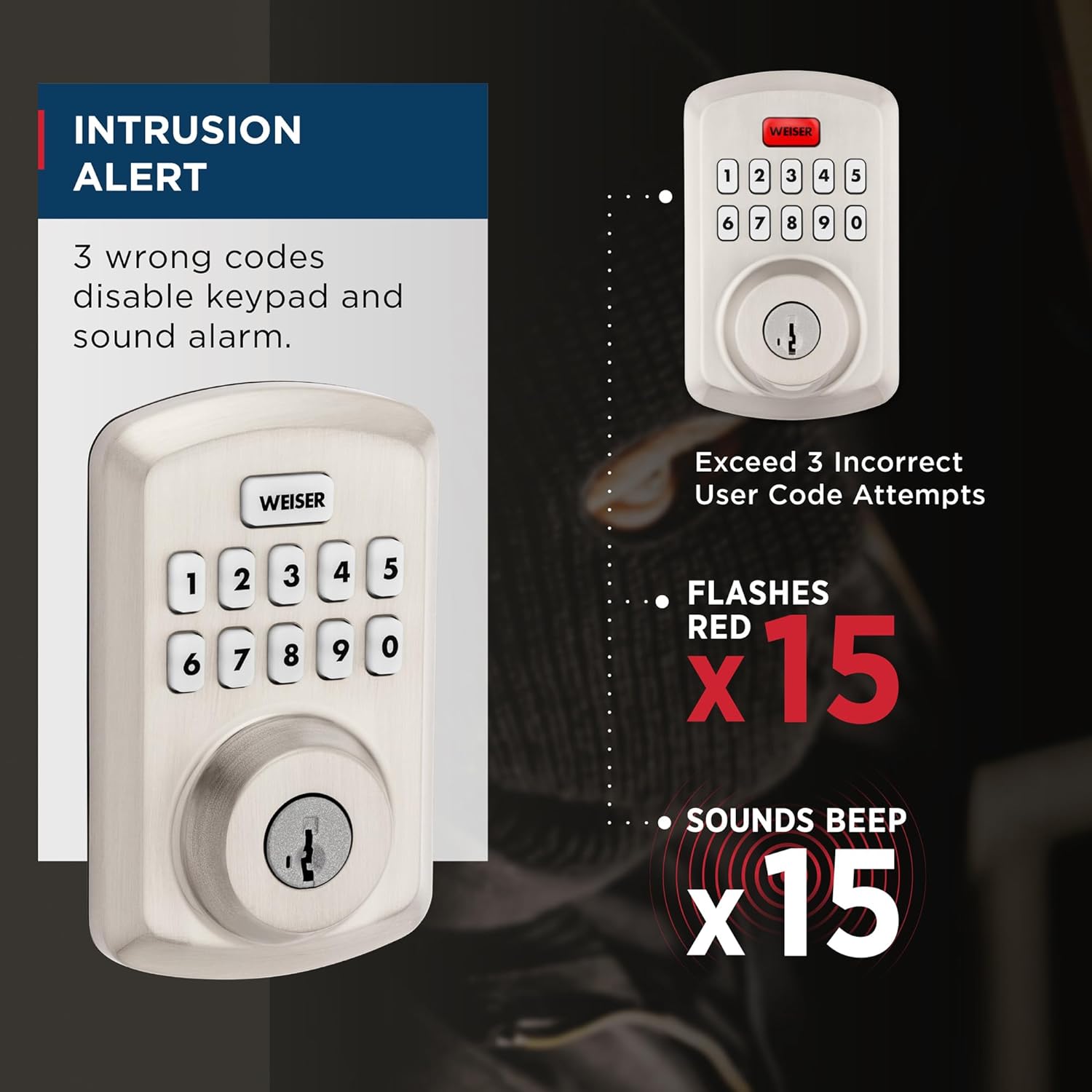 The Weiser Powerbolt 3 Electronic Door Lock, available in a transitional design, is an easy and attainable way to upgrade to an electronic door lock. It offers convenient keyless entry that makes coming and going secure and simple. Customize up to 25 user codes and enjoy easy code access with the 1-button light-up keypad. Additional features include Auto Lock and Vacation Mode, which provide security and peace of mind. All you need is a screwdriver to install it.