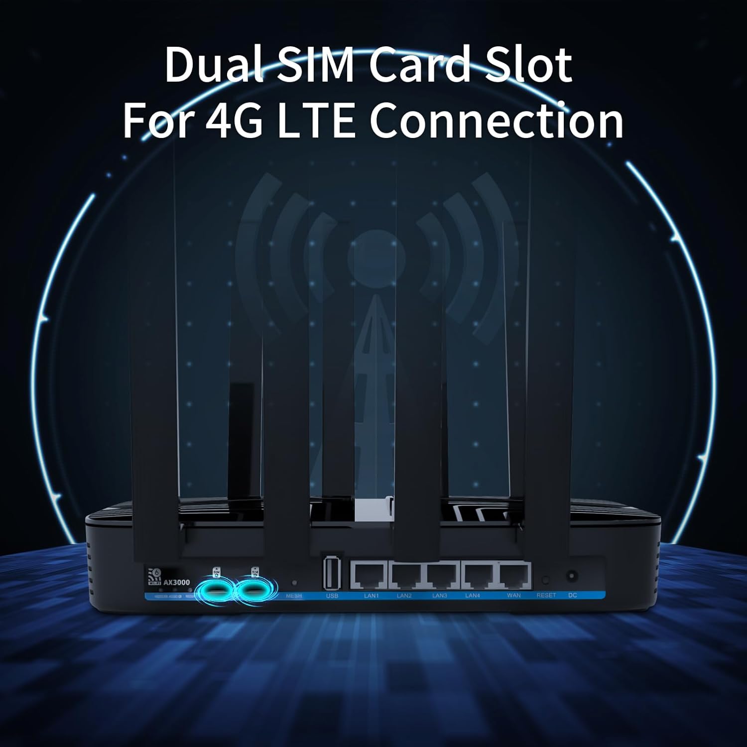 Wiflyer AX3000 Dual SIM 4G LTE Router, Dual Band WiFi 6 Cellular Router with Dual SIM Card Slot Unlocked, All Gigabit Ports and USB 3.0, Z8102-M2-S-EC25PL17-B0CGKXS8PD