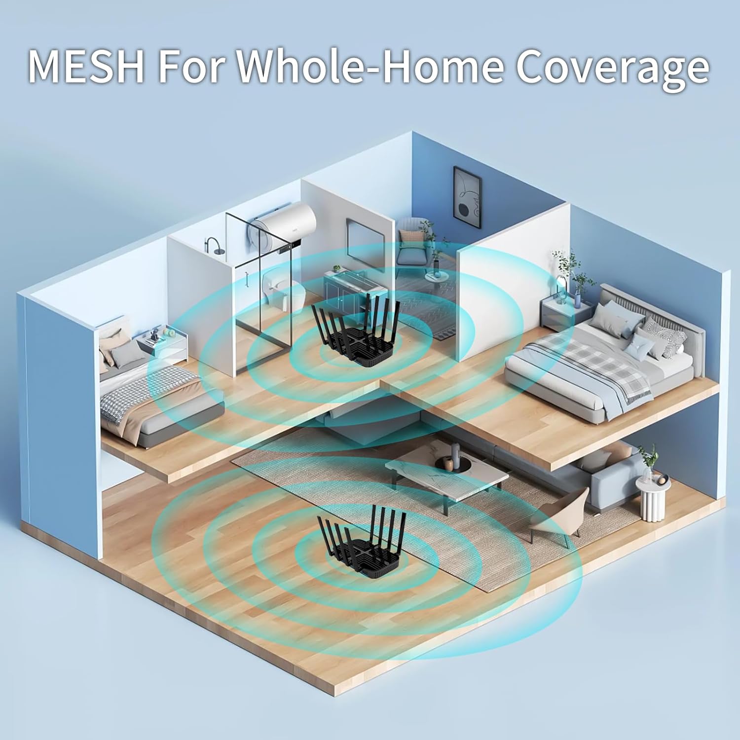 • Powerful Performance:Adopts MT7981B dual-core CPU with up to 1.3GHZ main frequency. Equipped with 1GB DDR4 and 128MB SPI NAND flash memory. Powerful hardware enables routers to process more data faster, thus providing higher network speeds and more functions.